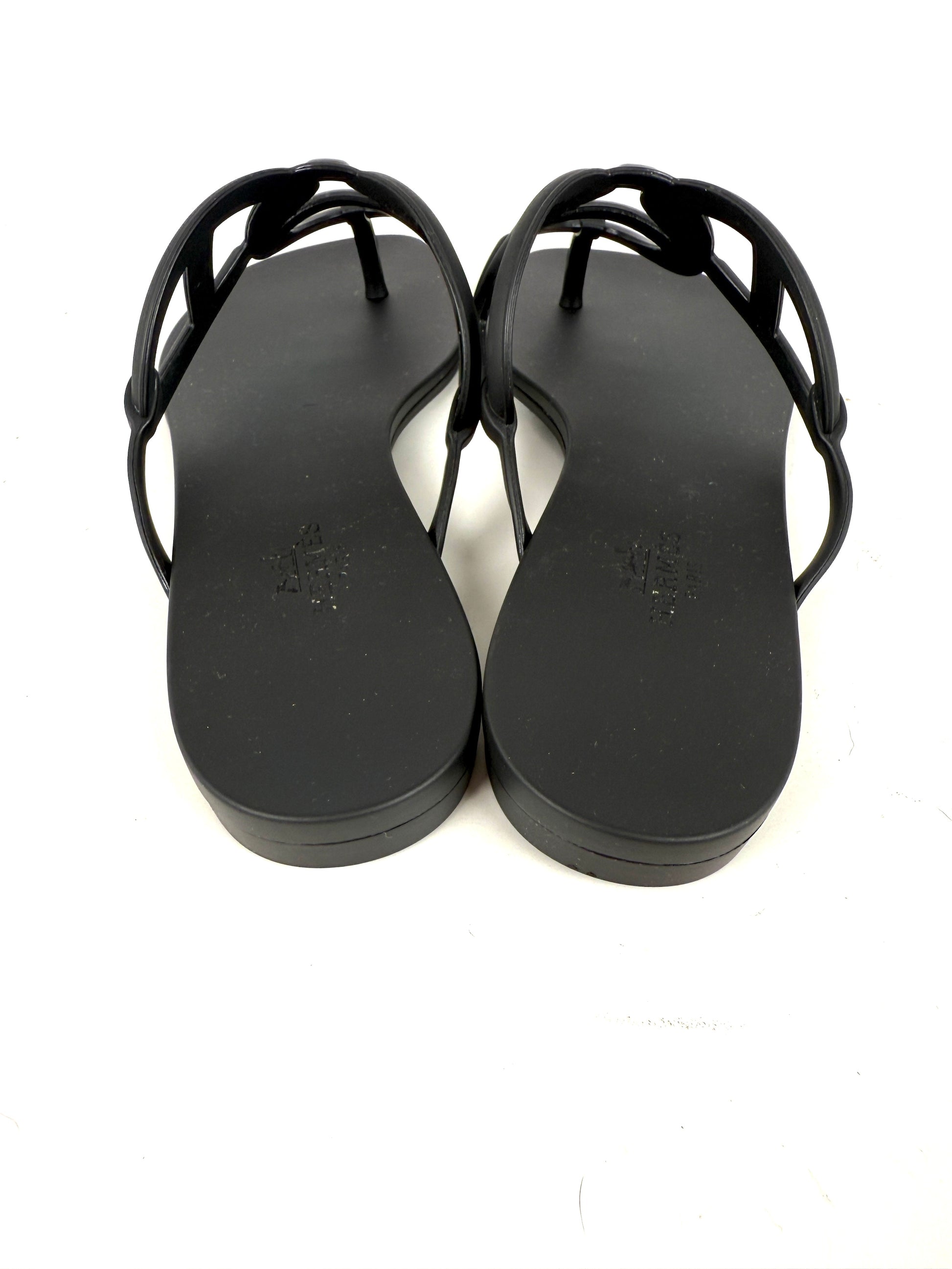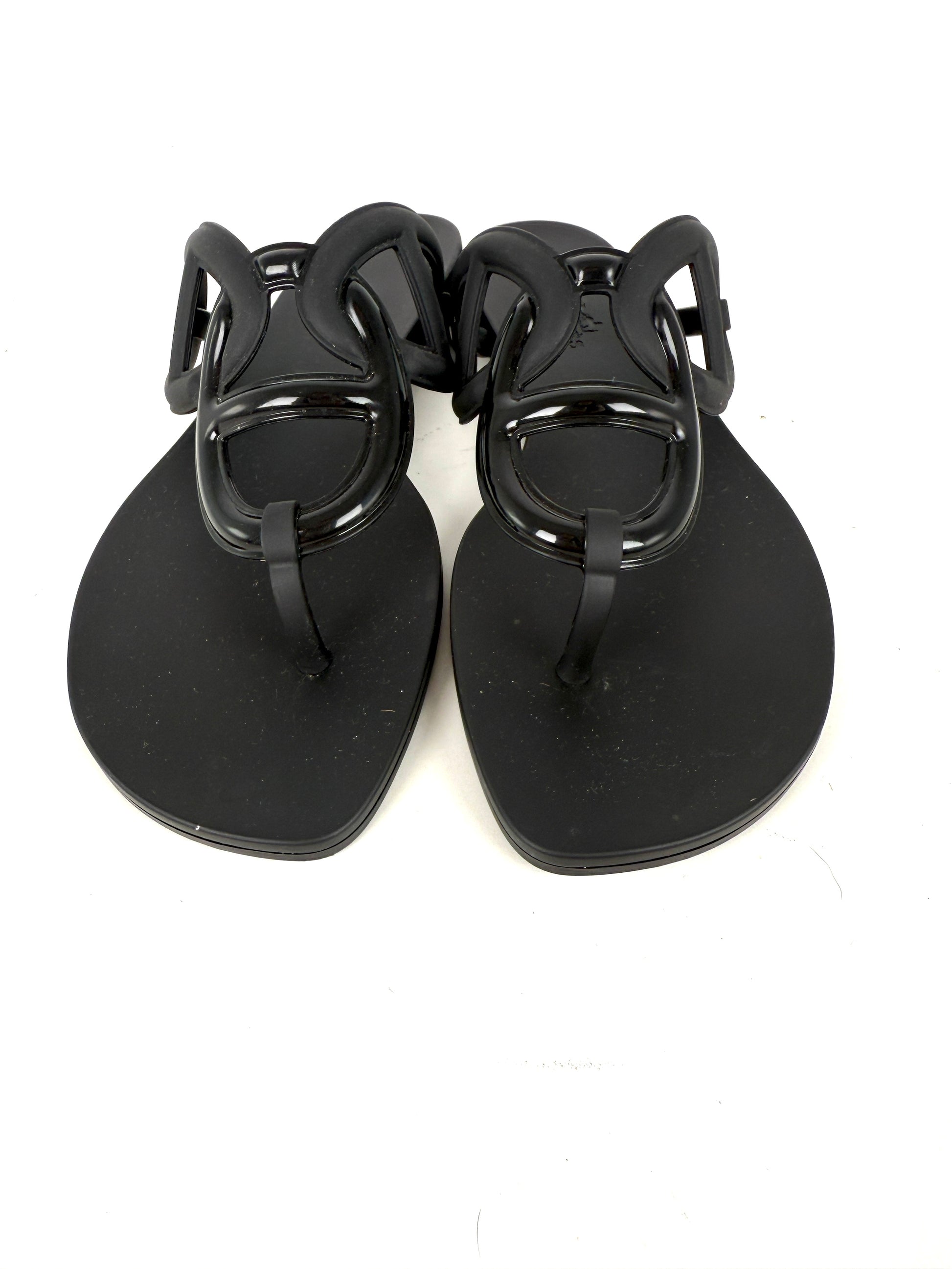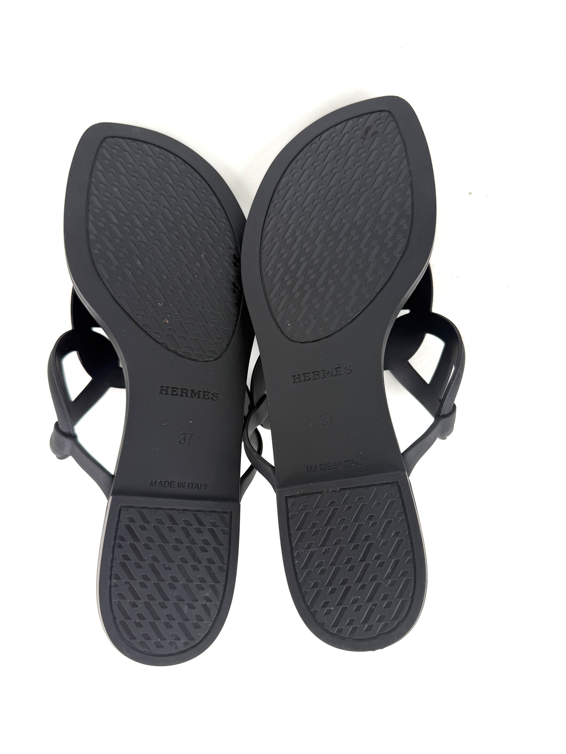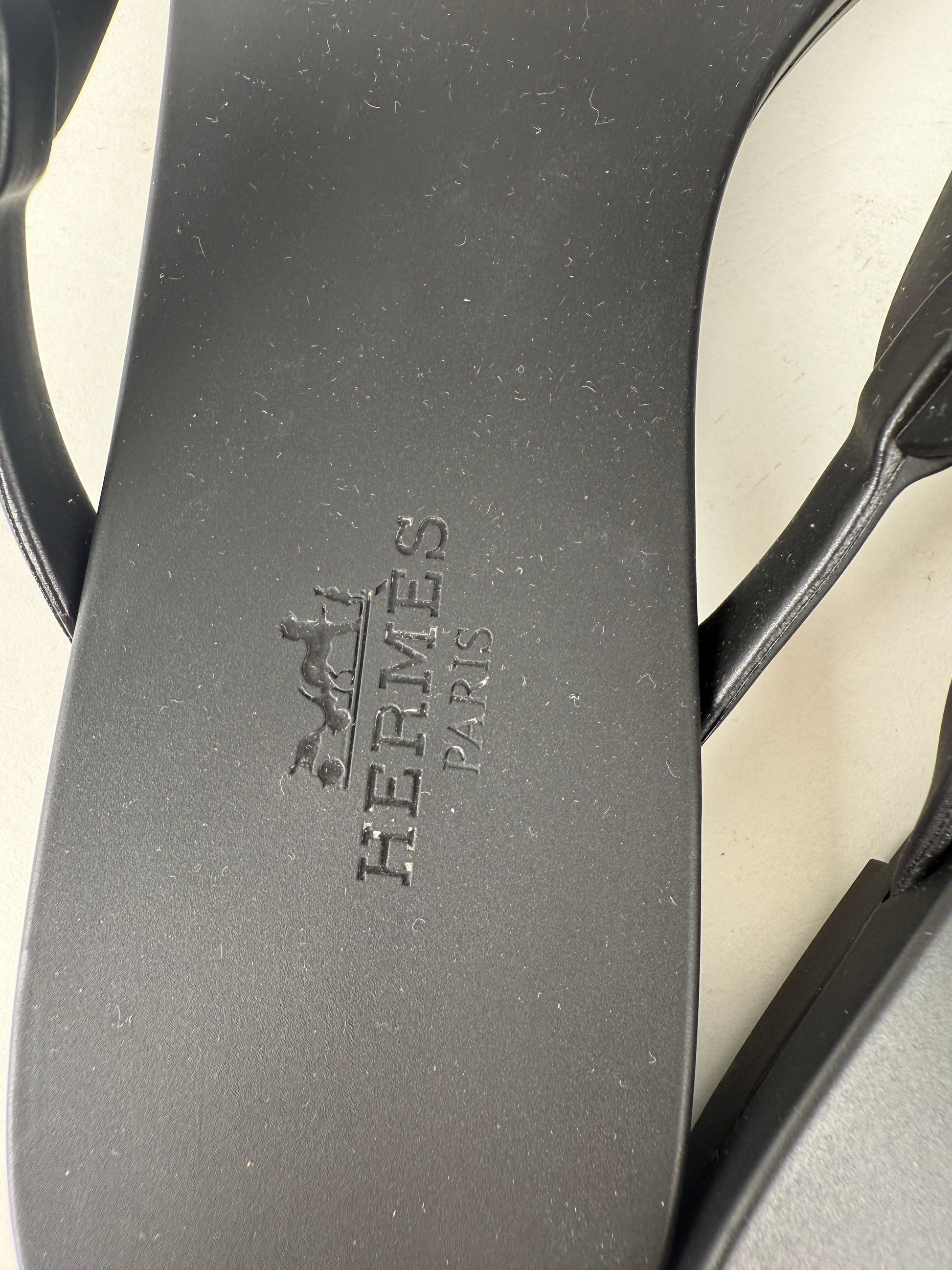 HERMES Egerie Chaine d’Ancre Insignia Black Slide Sandals 37, 6.5