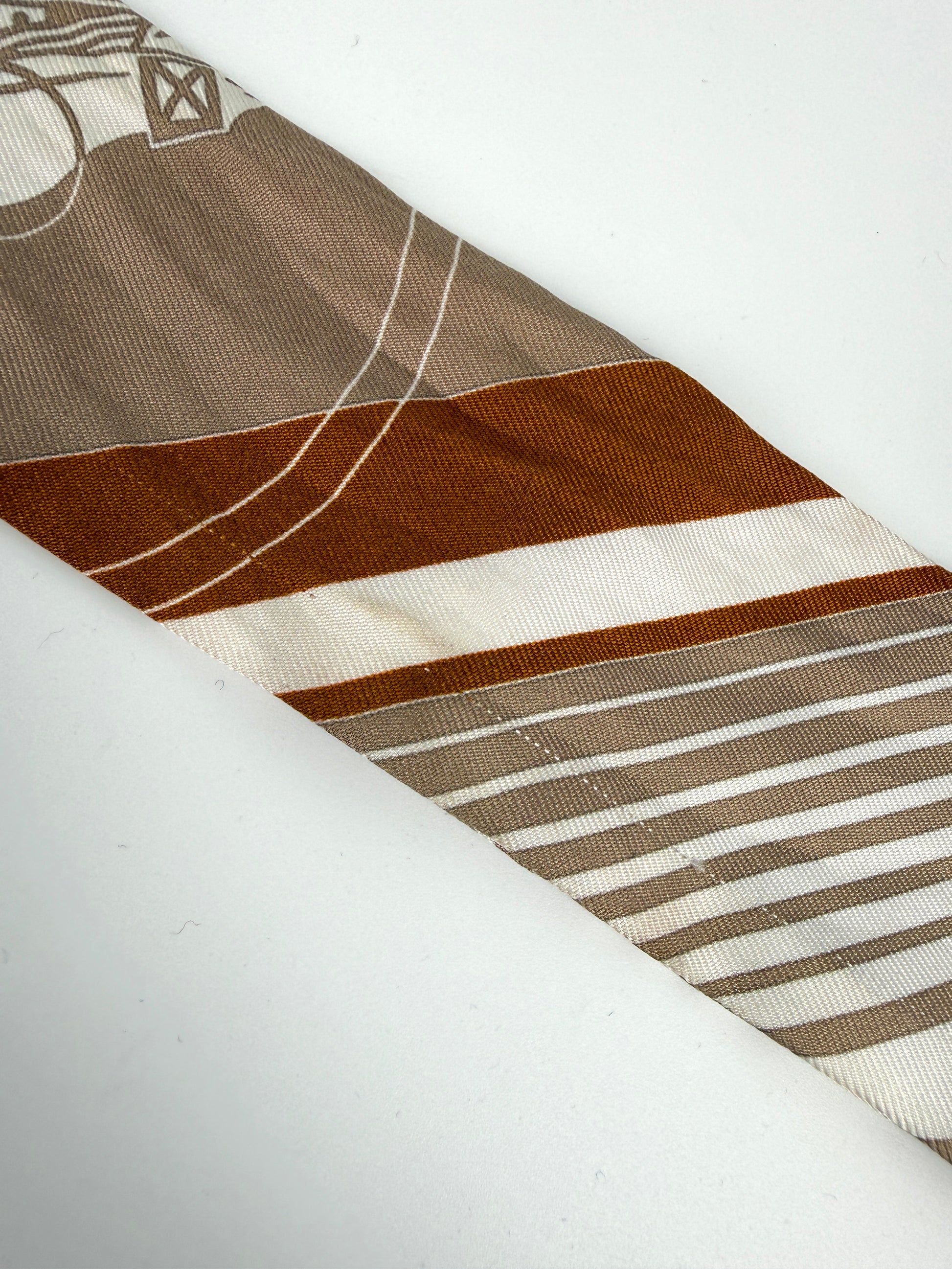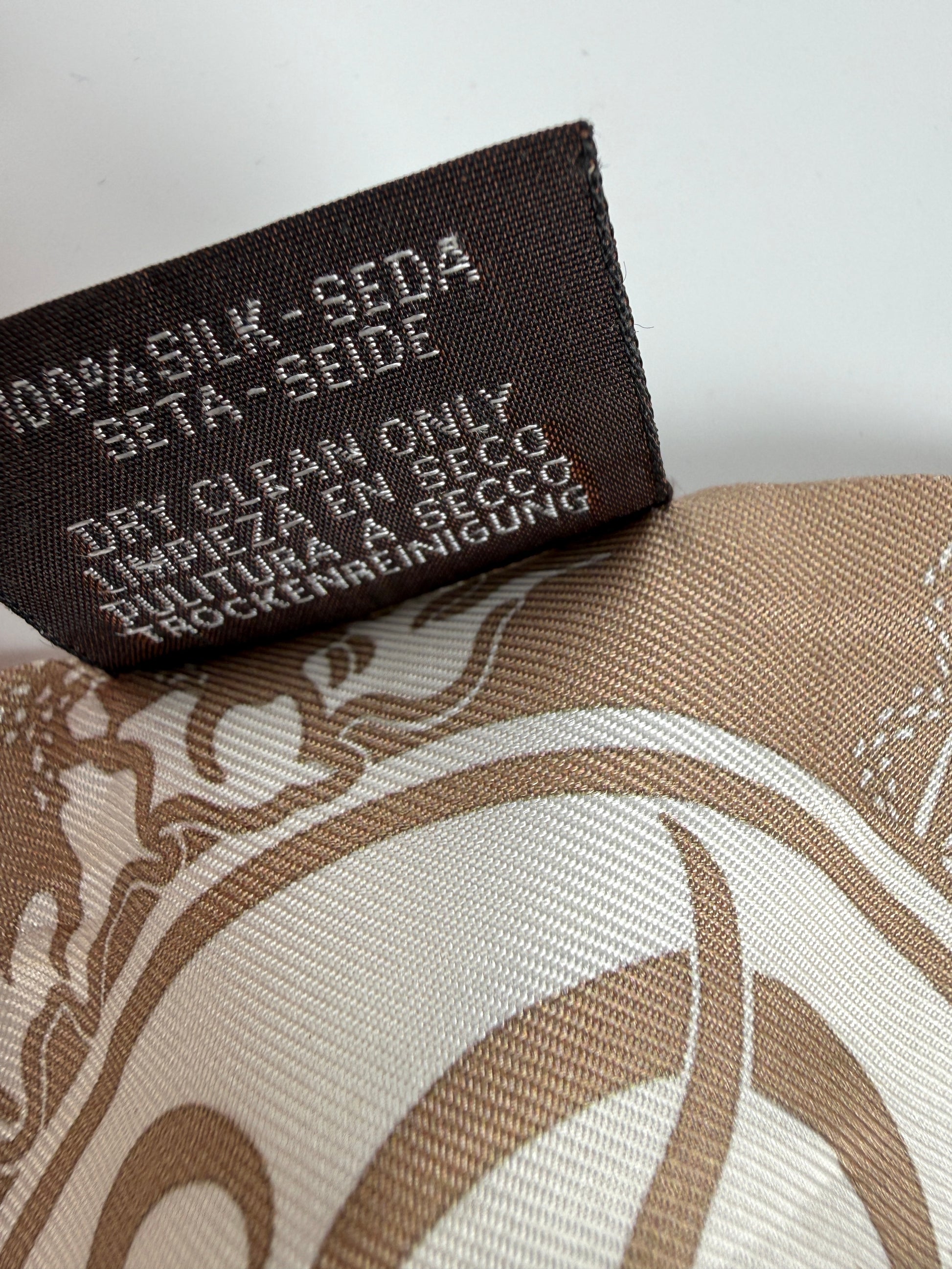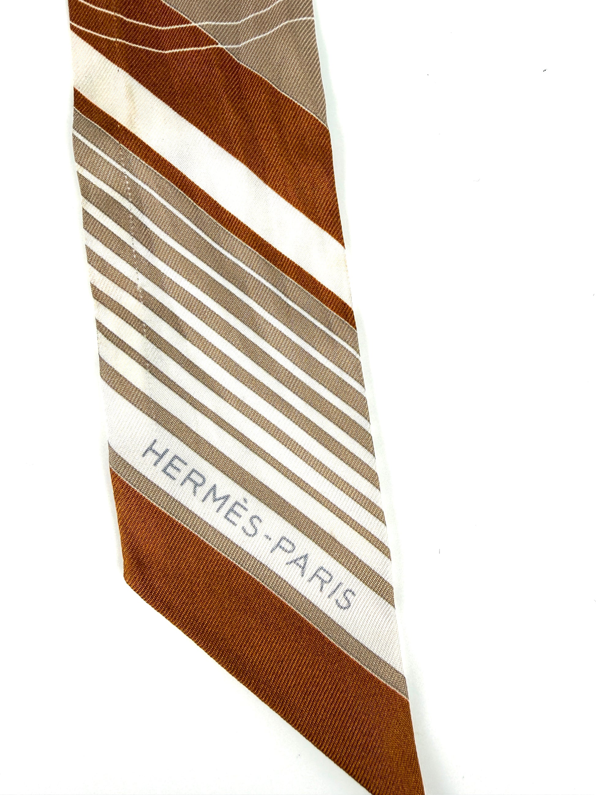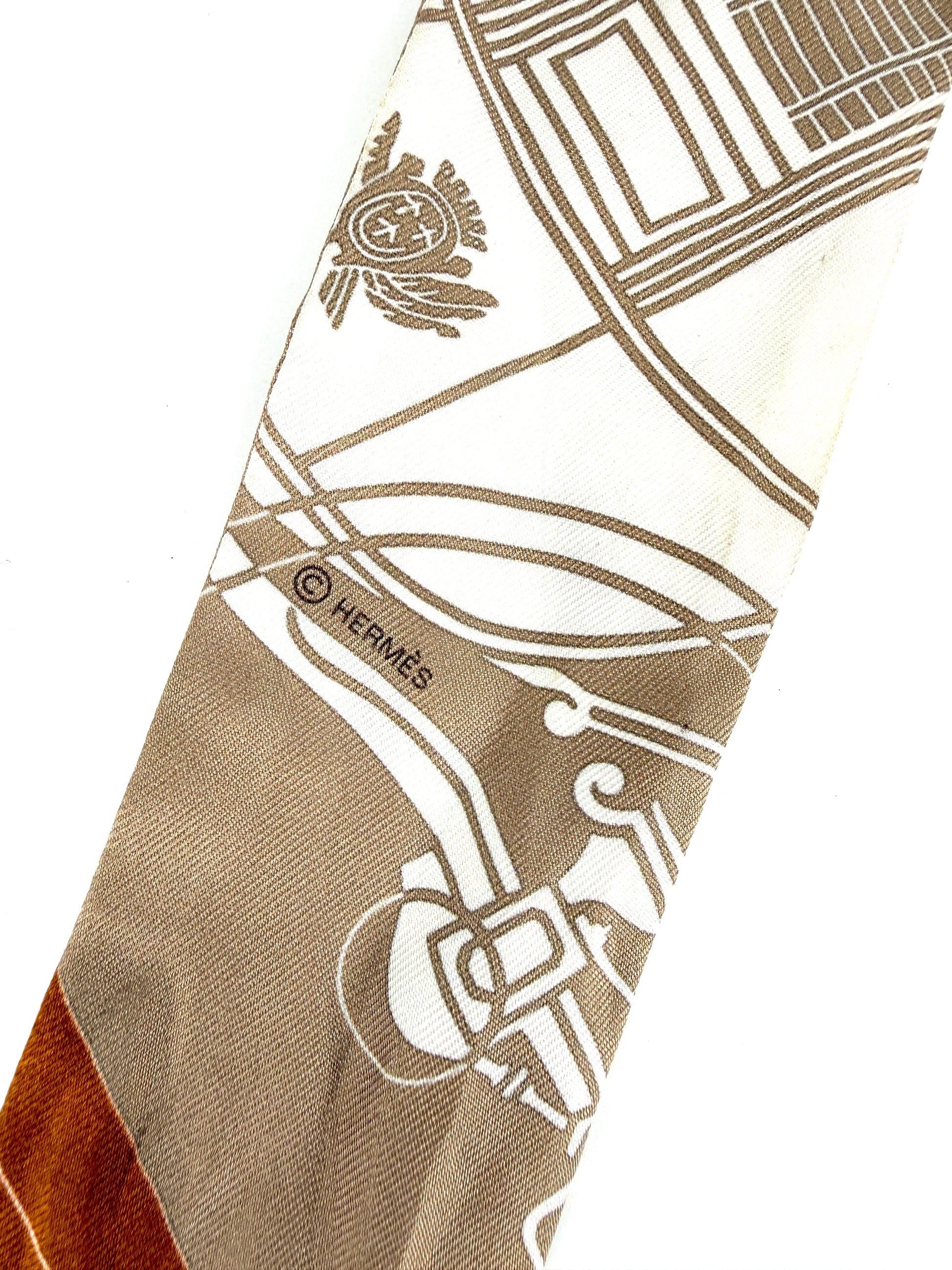 Hermes Ex Libris Horse Carriage Print Beige White Caramel Silk Twilly Scarf