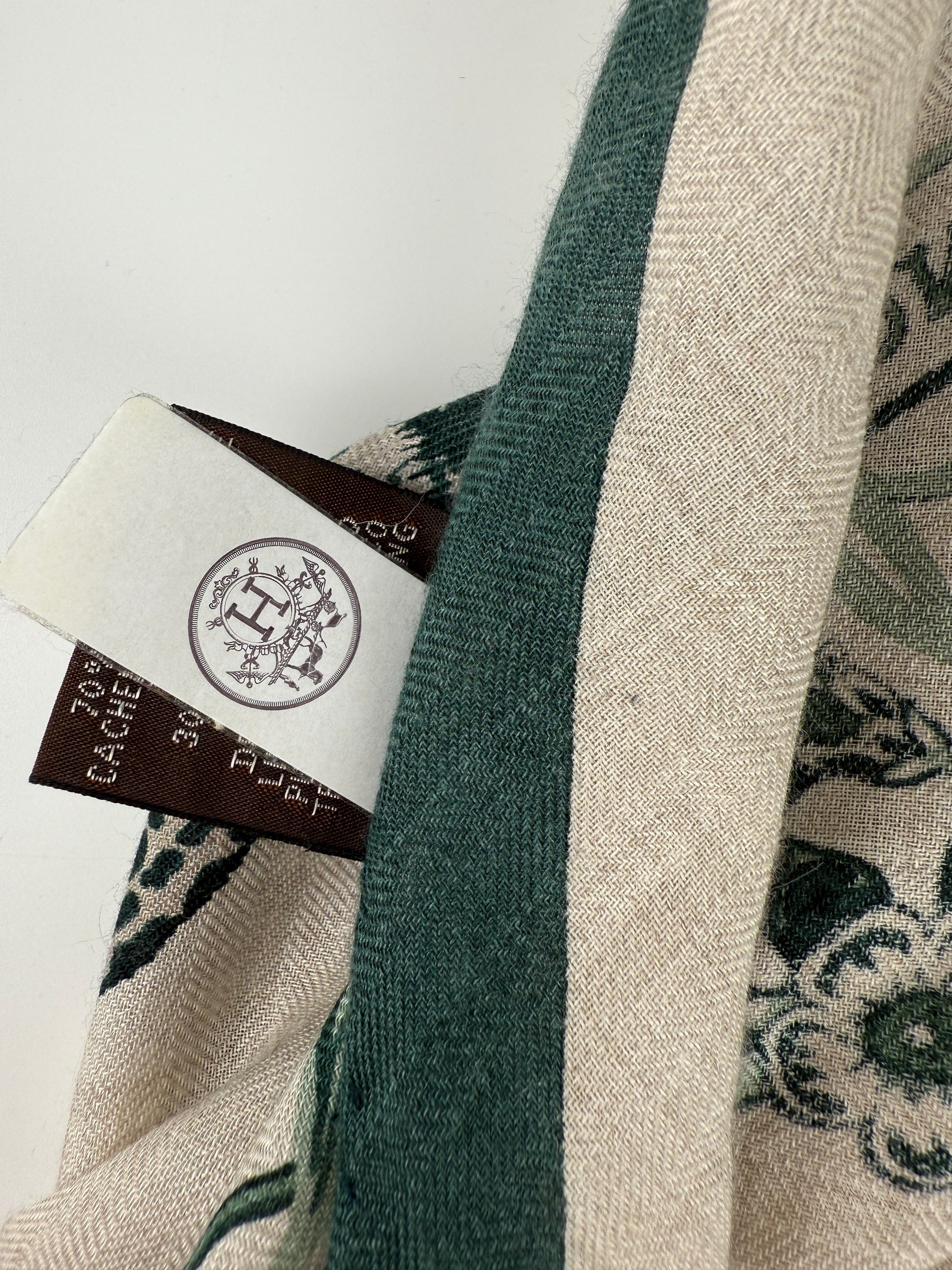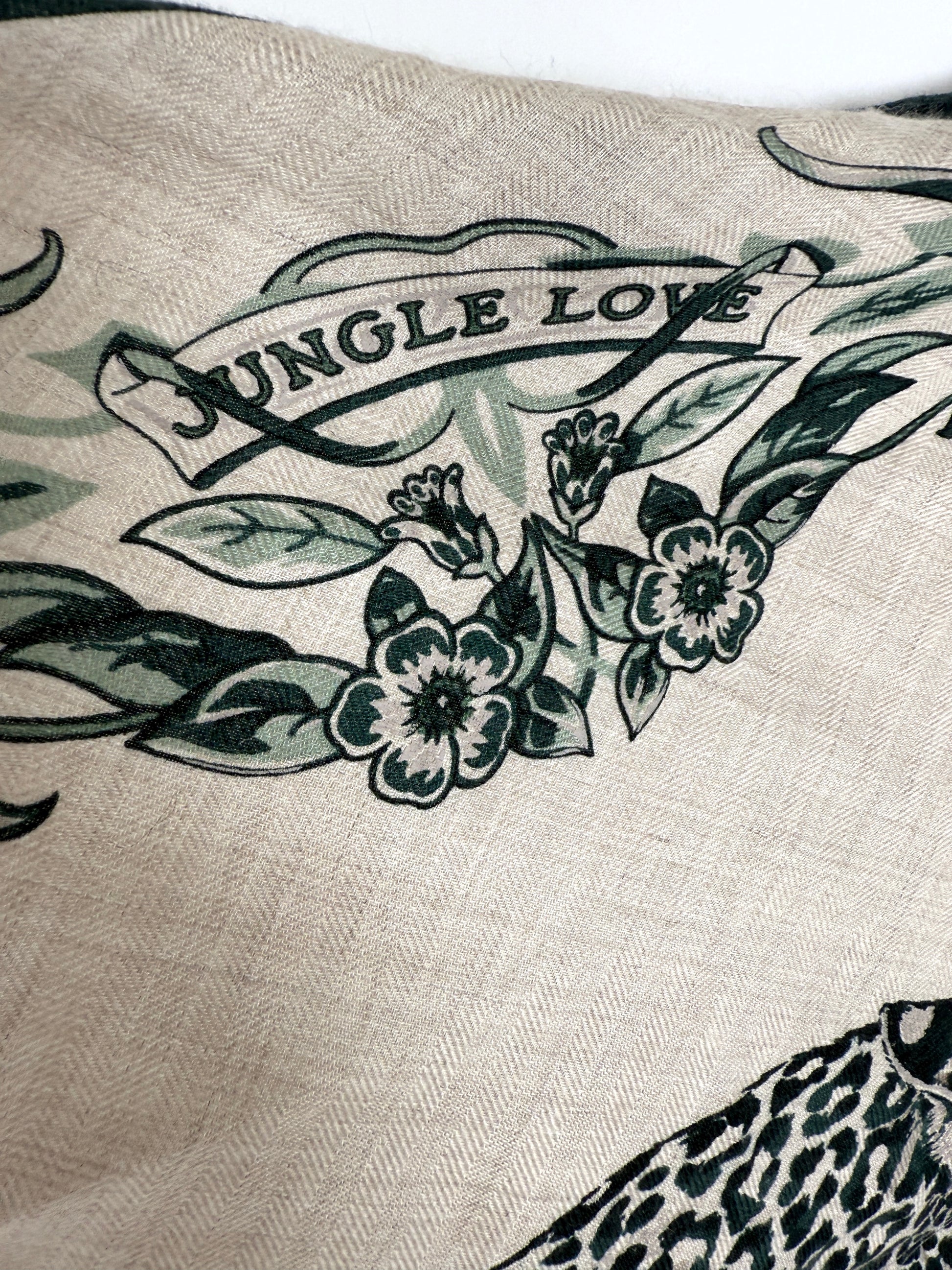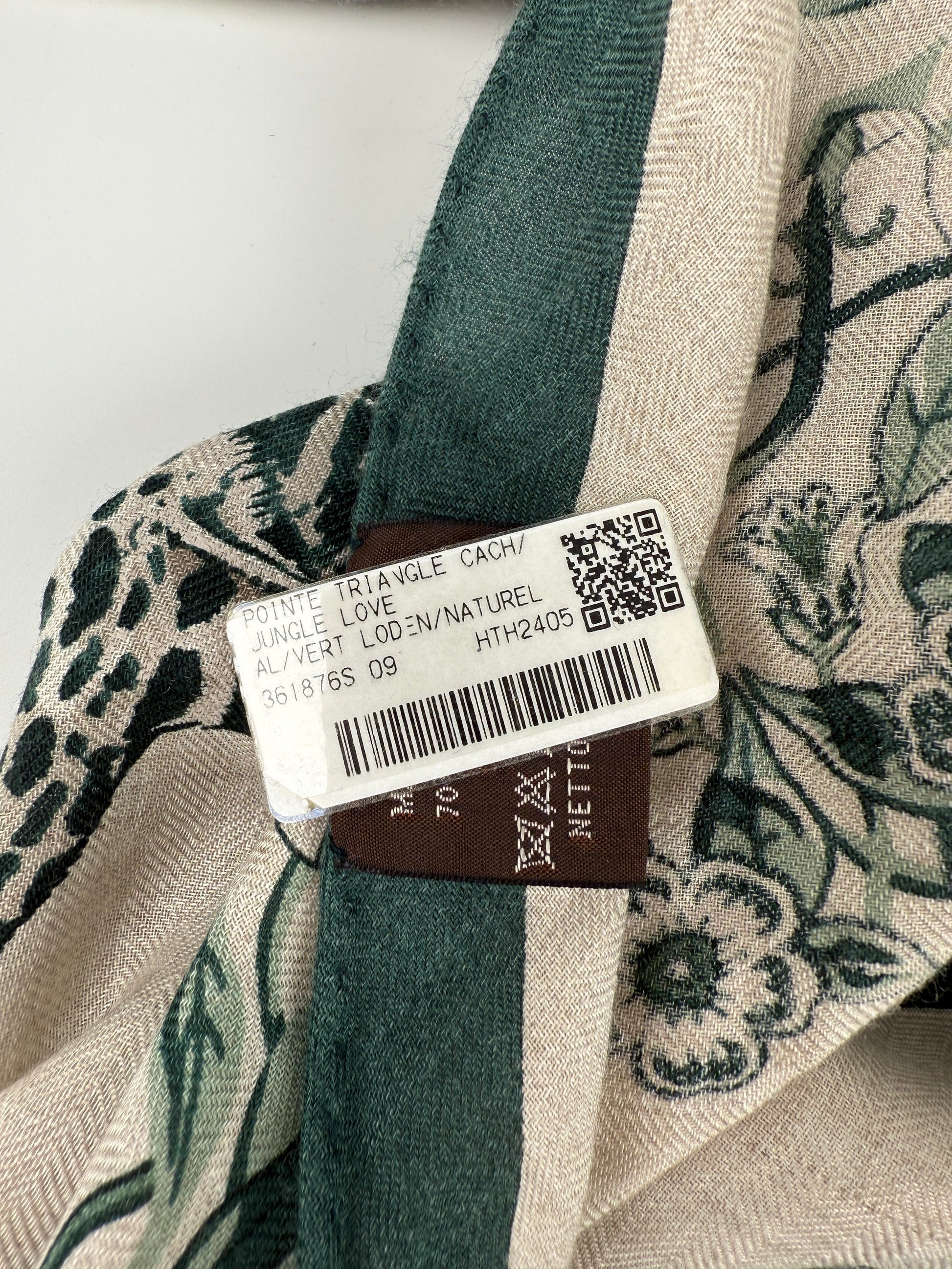 HERMES Jungle Love Jaguar Giant Triangle Green Natural Cashmere Silk Scarf New with tag