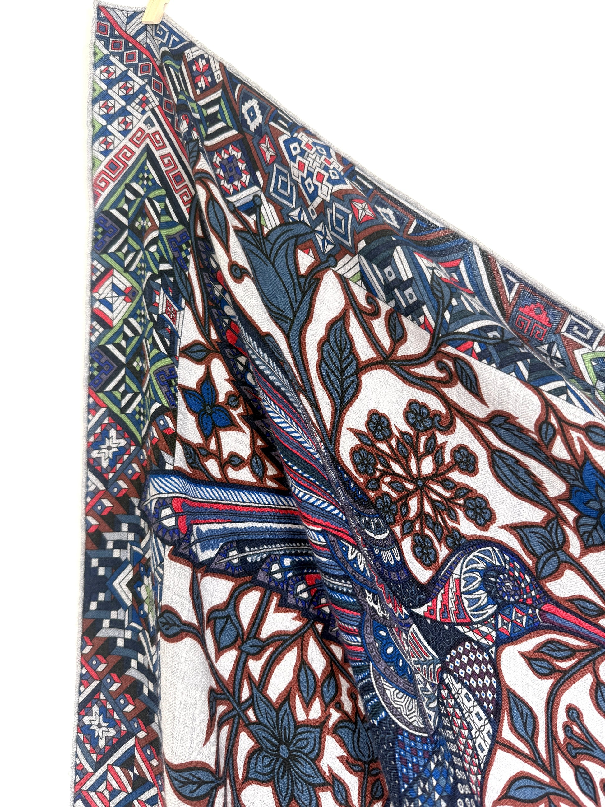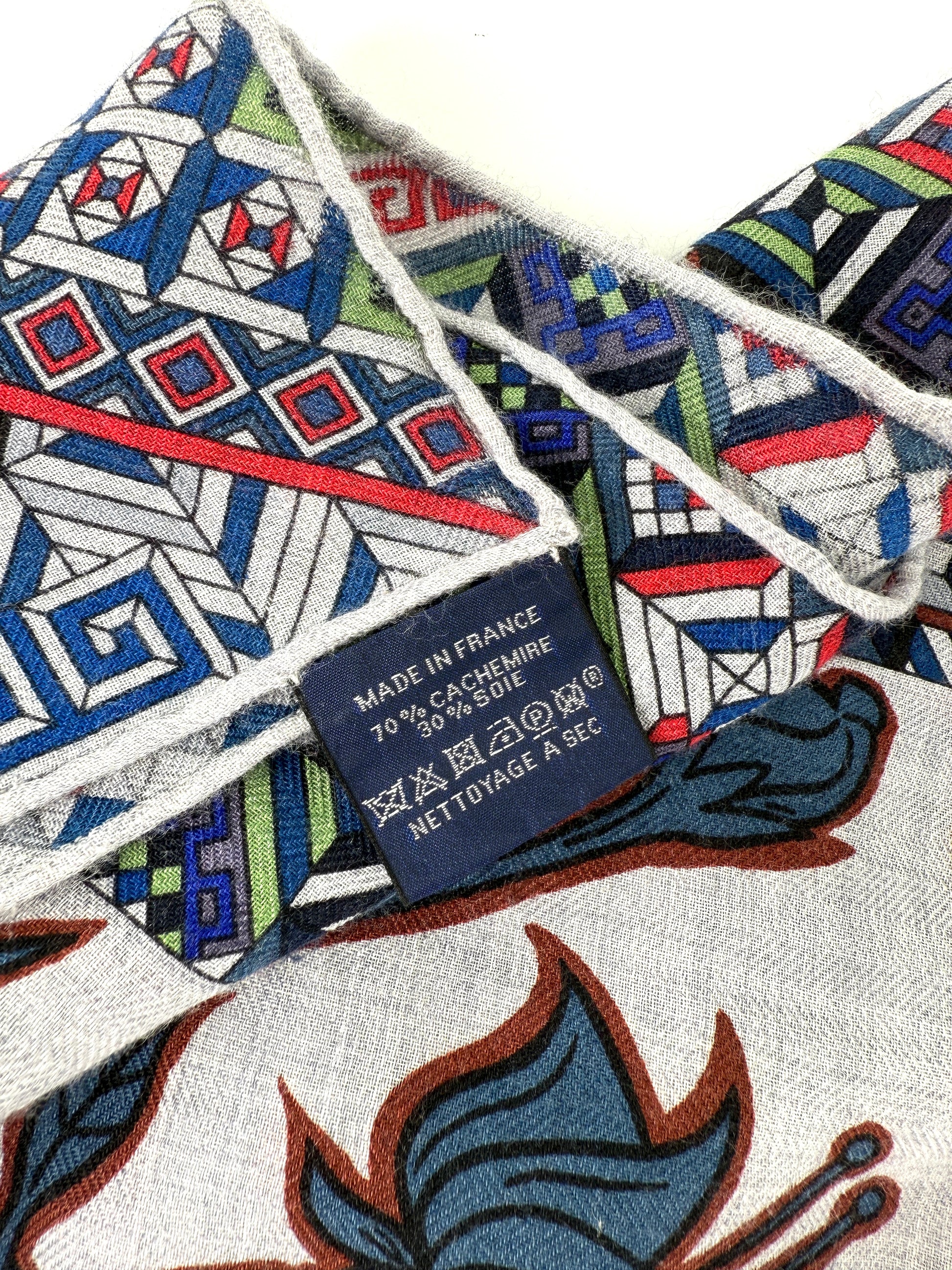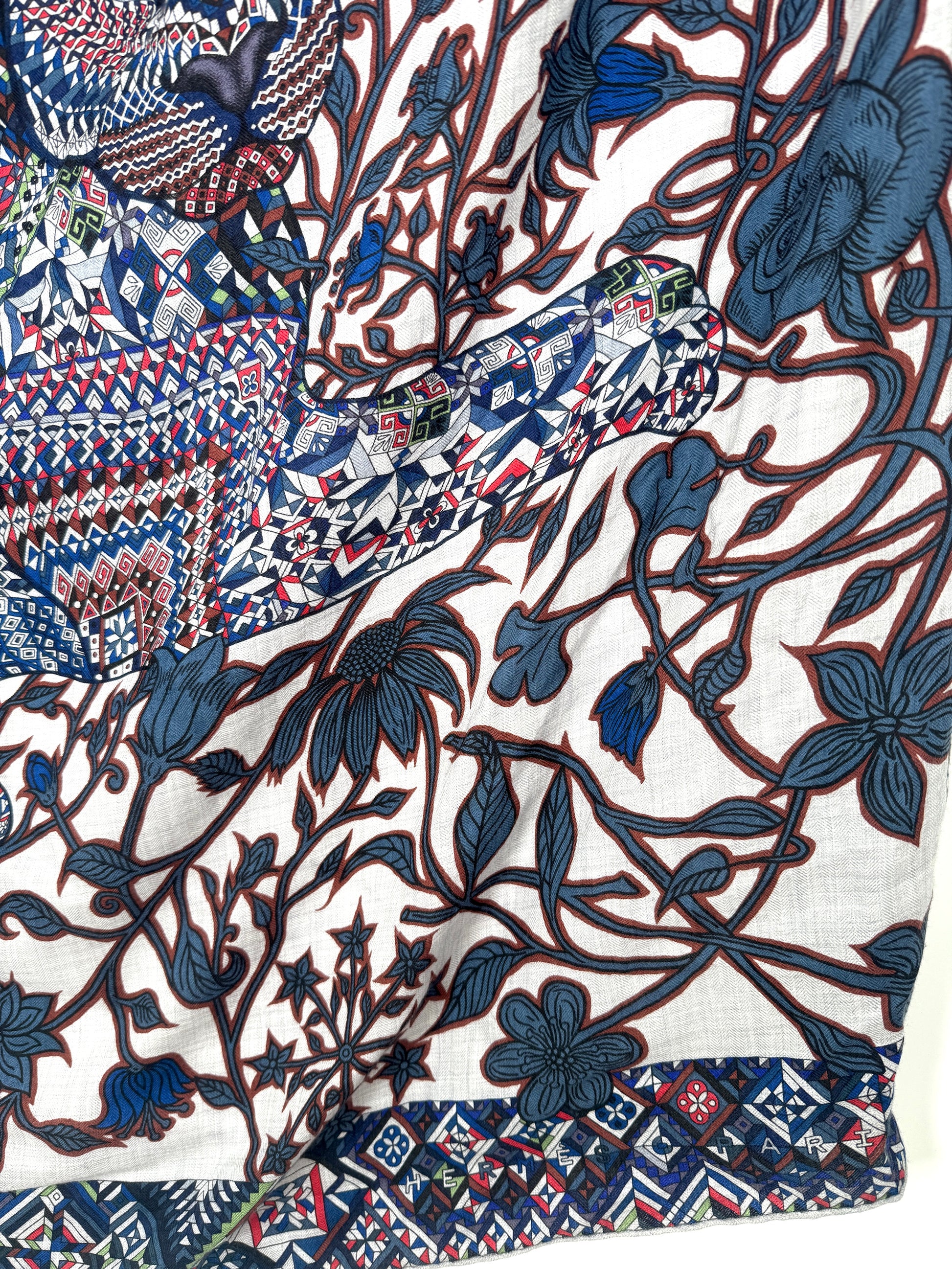 HERMES Le Jaguar Et Le Colibri Gris Chine Bleu Acajou Cashmere 140 Shawl Scarf