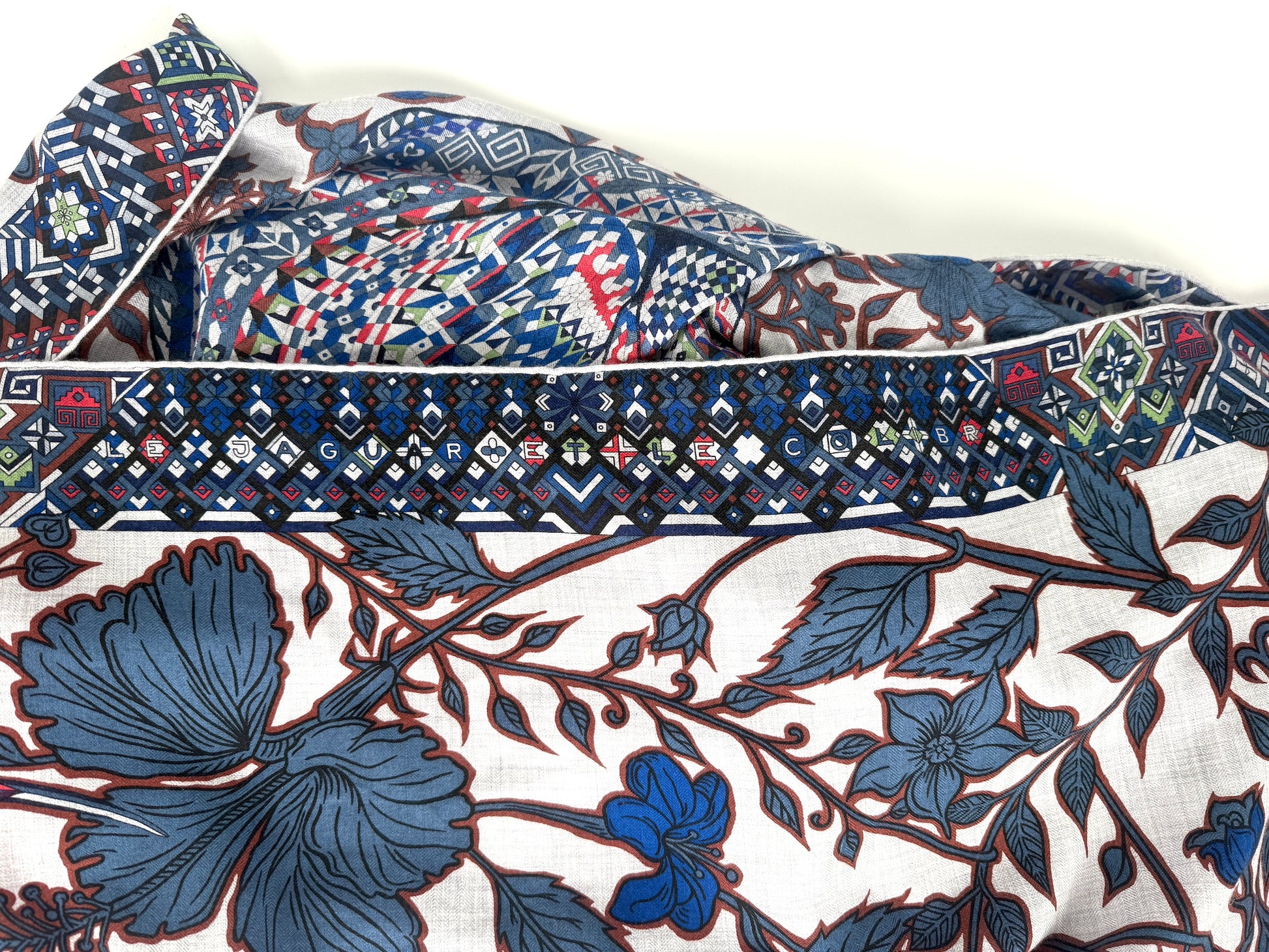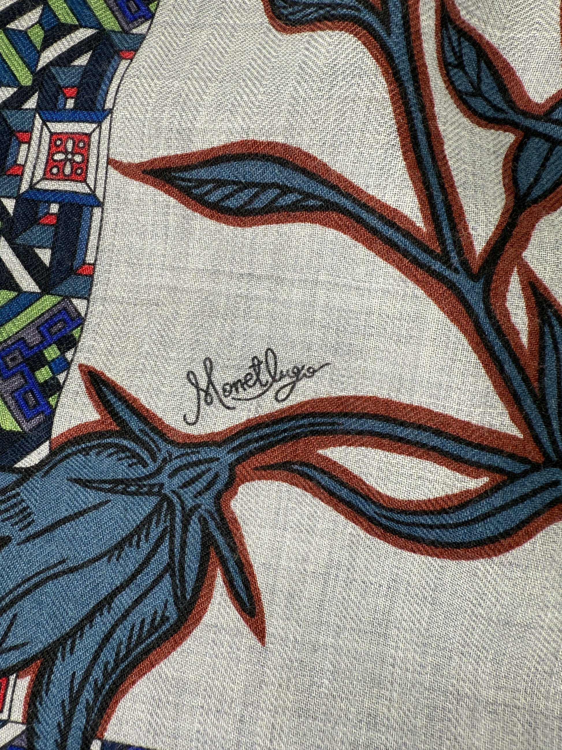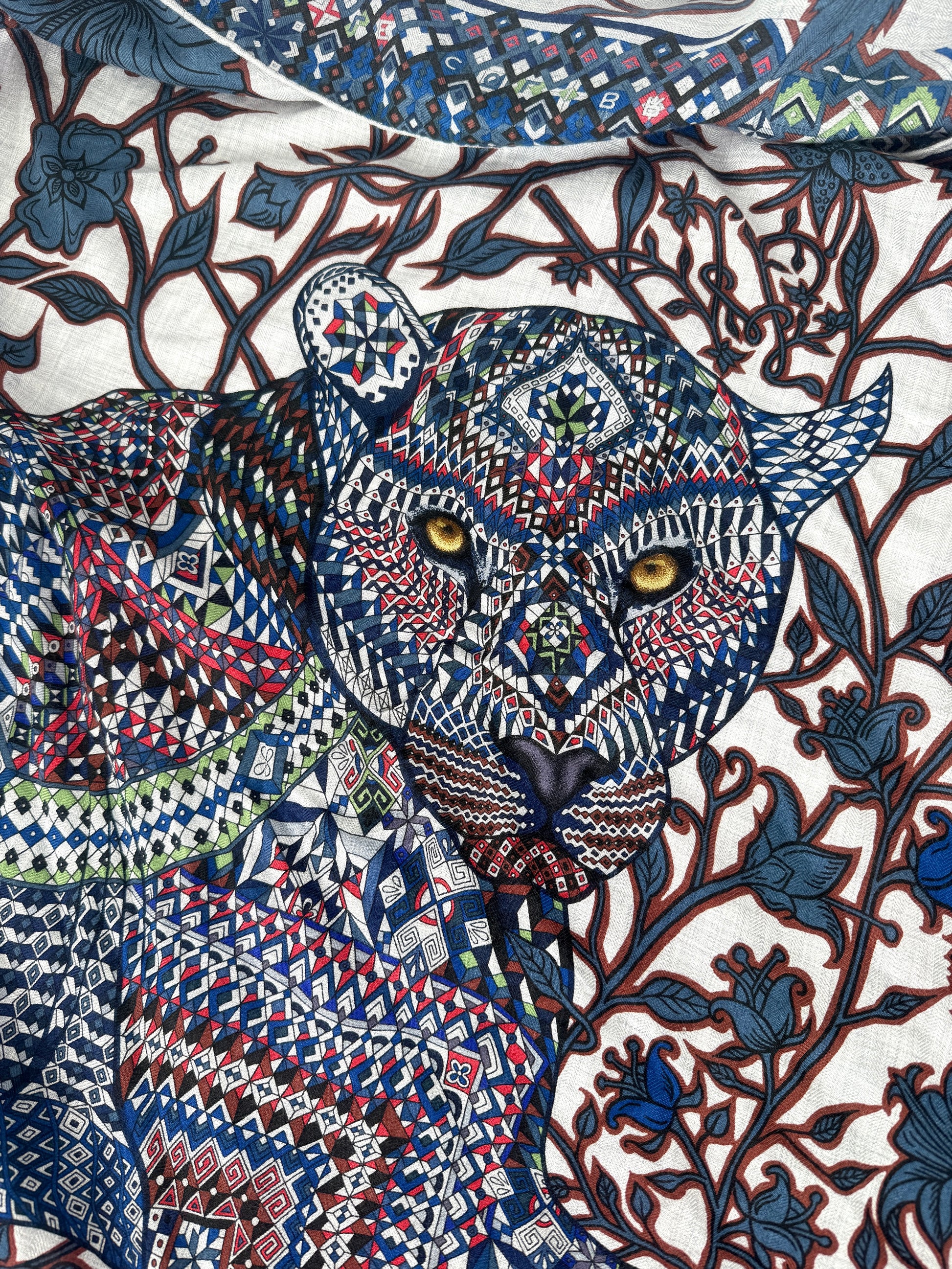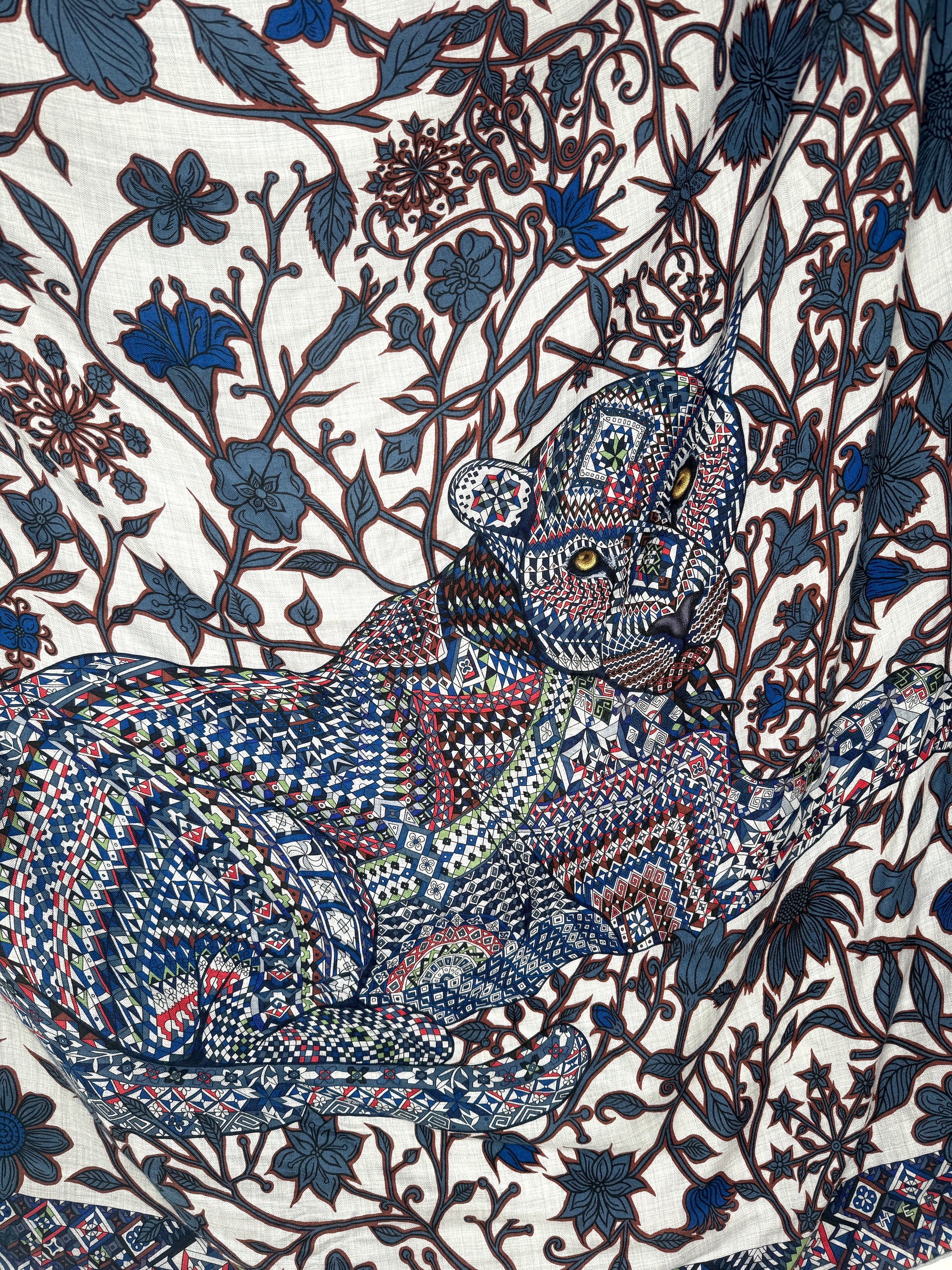 HERMES Le Jaguar Et Le Colibri Gris Chine Bleu Acajou Cashmere 140 Shawl Scarf