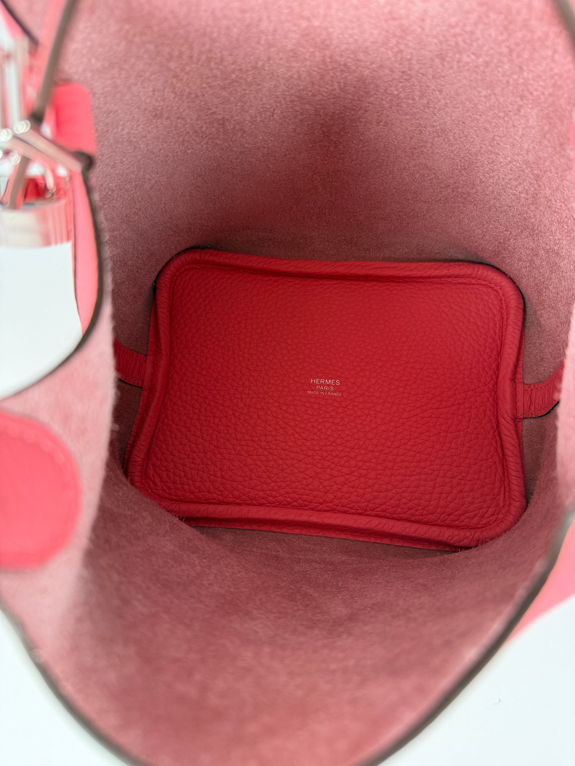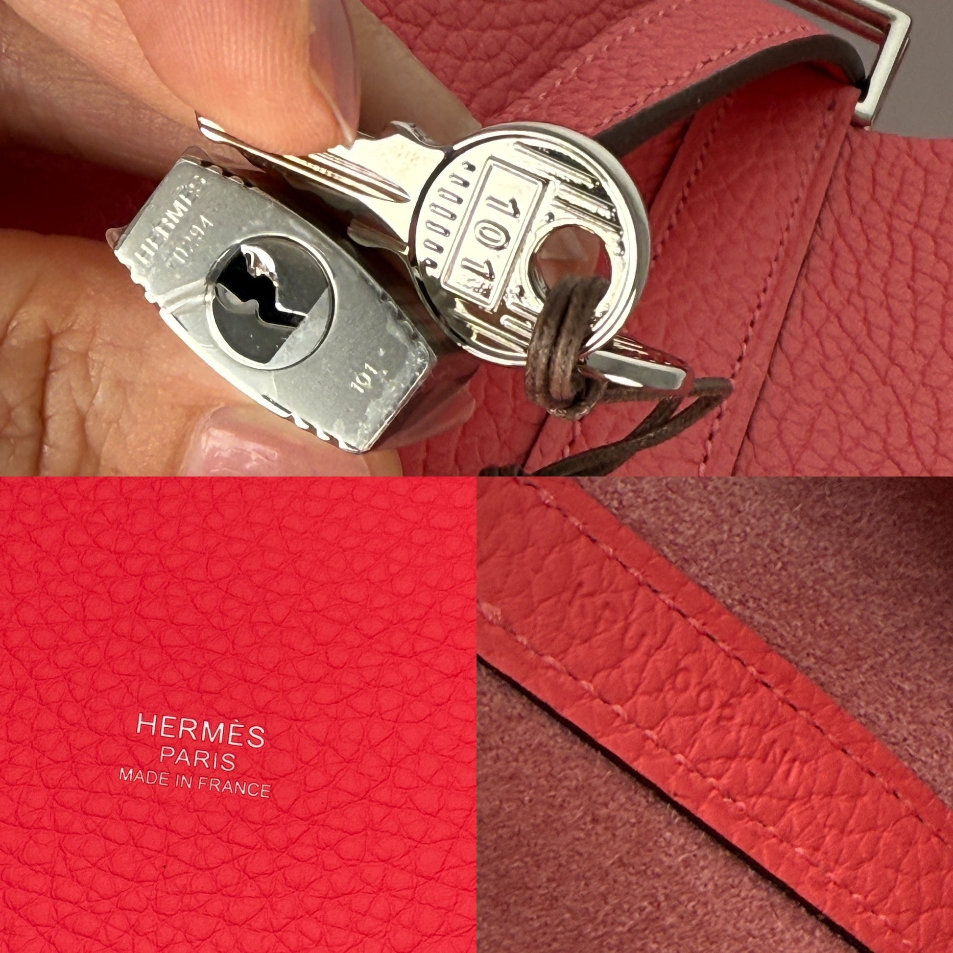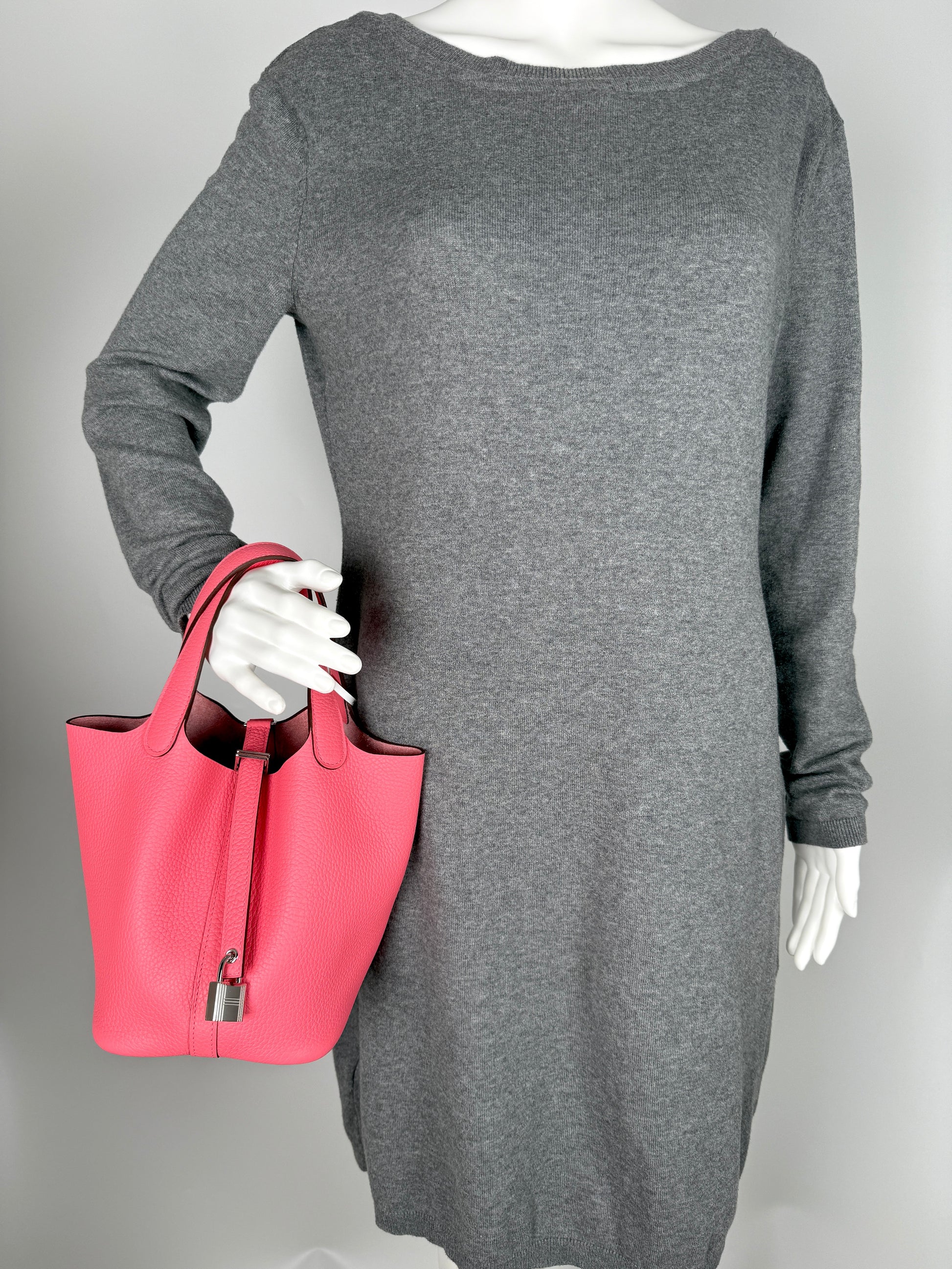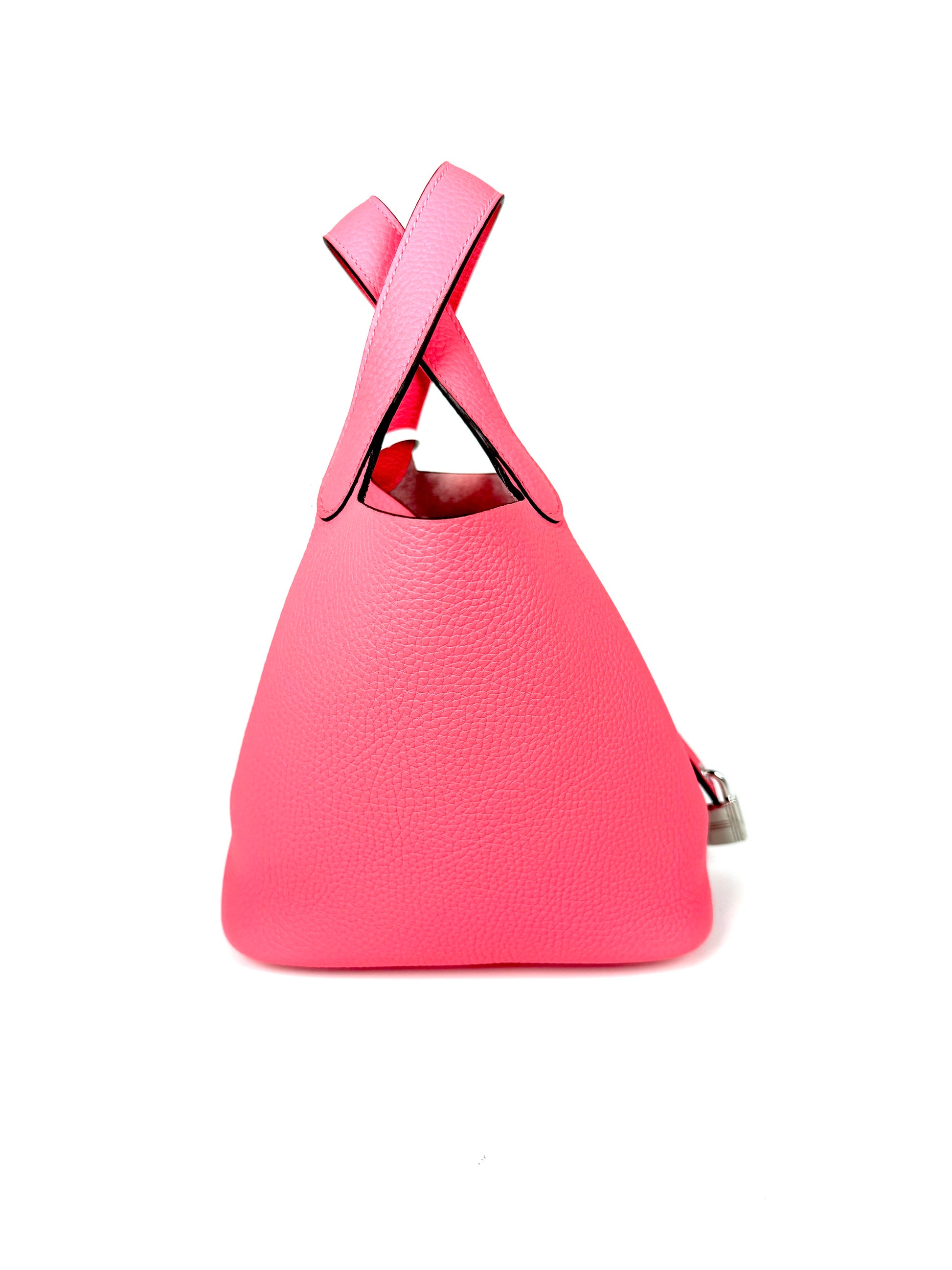 HERMES Picotin Lock 18 PM Pink Rose Azalee Taurillon Clemence Satchel Top Handle Bag