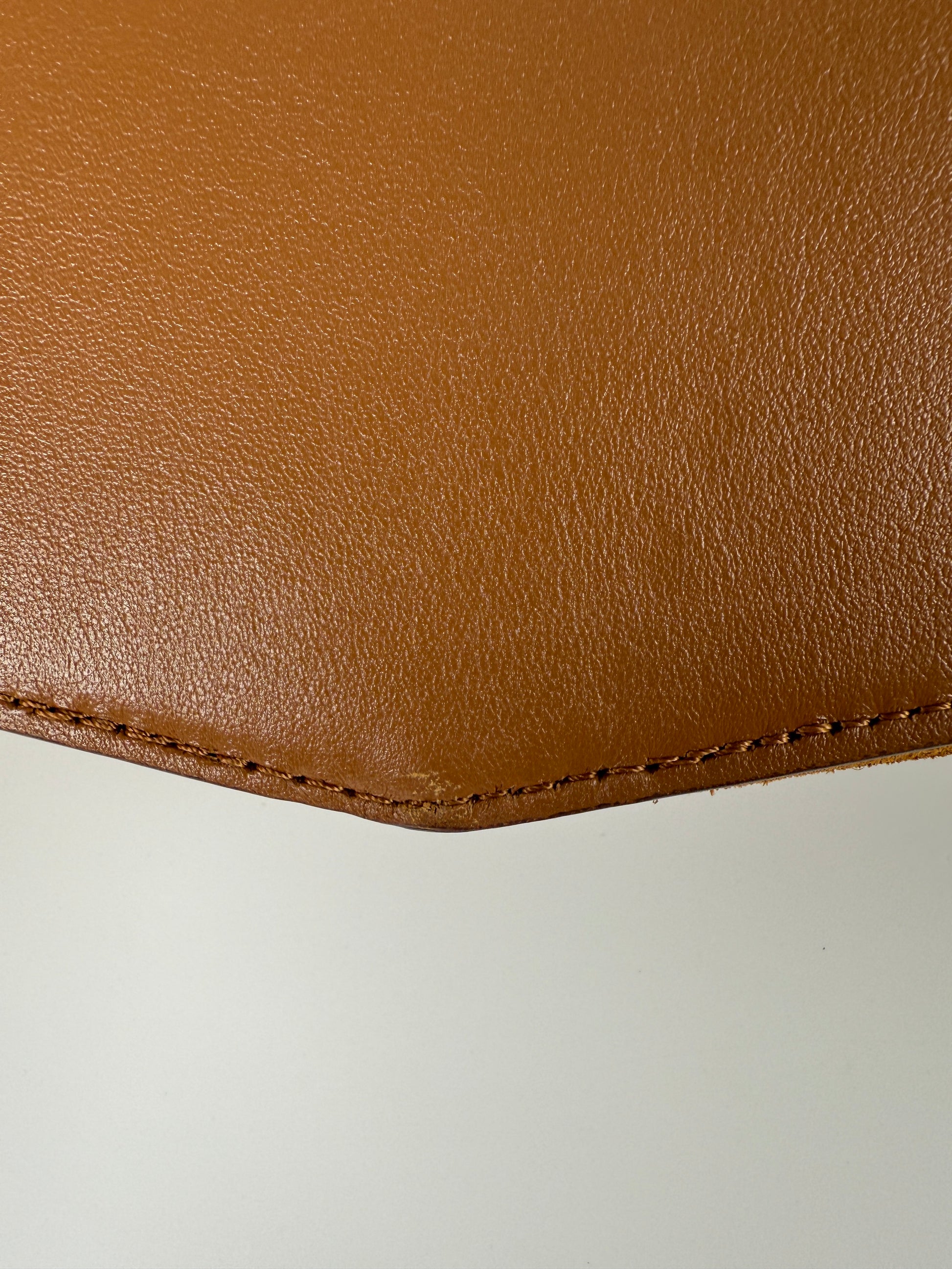 Features: Flat leather shoulder straps, one zip interior pocket.