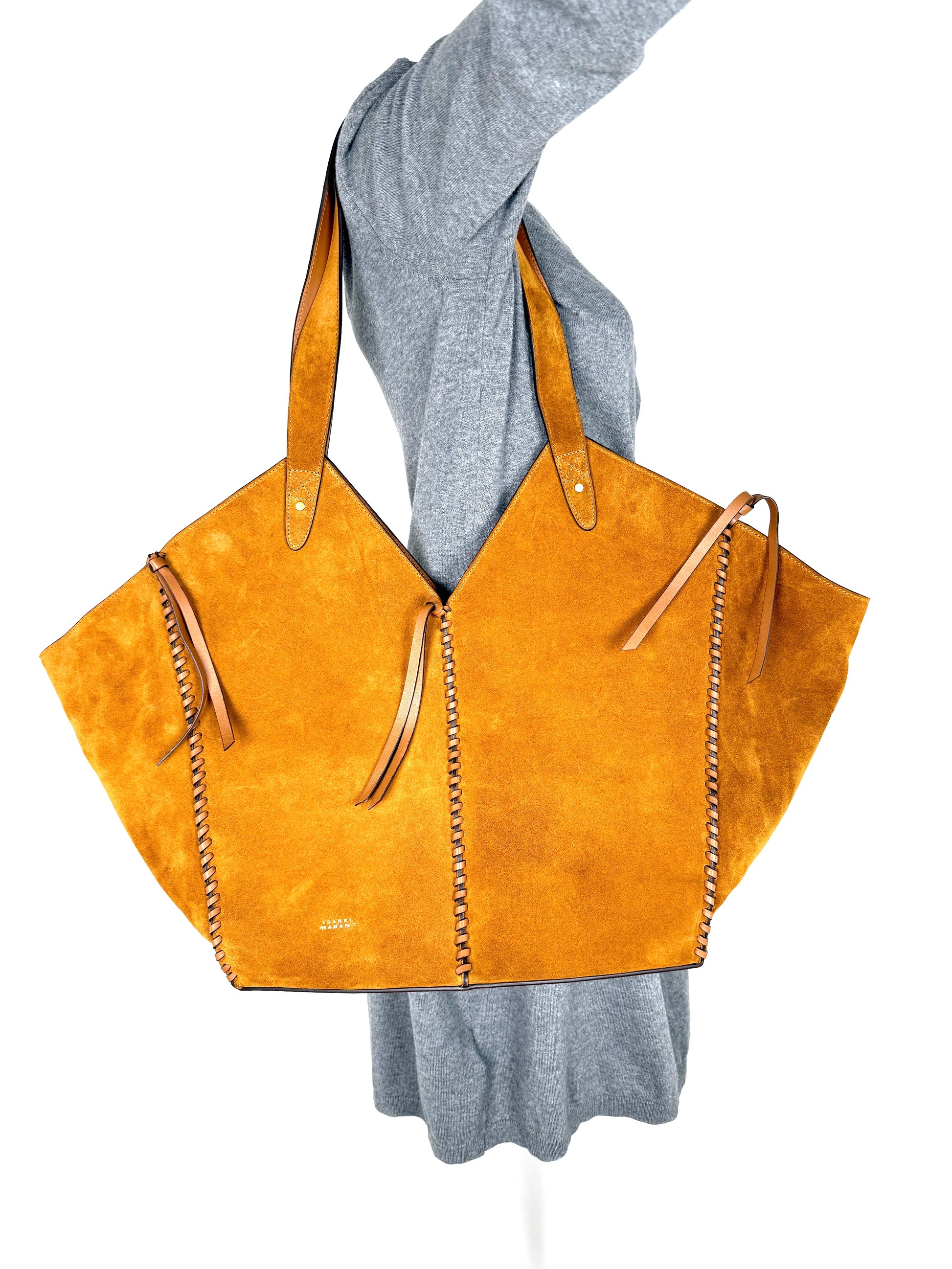 Isabel Marant Tampa Braided Leather Trim Brown Suede 2025 Tote Shoulder Bag