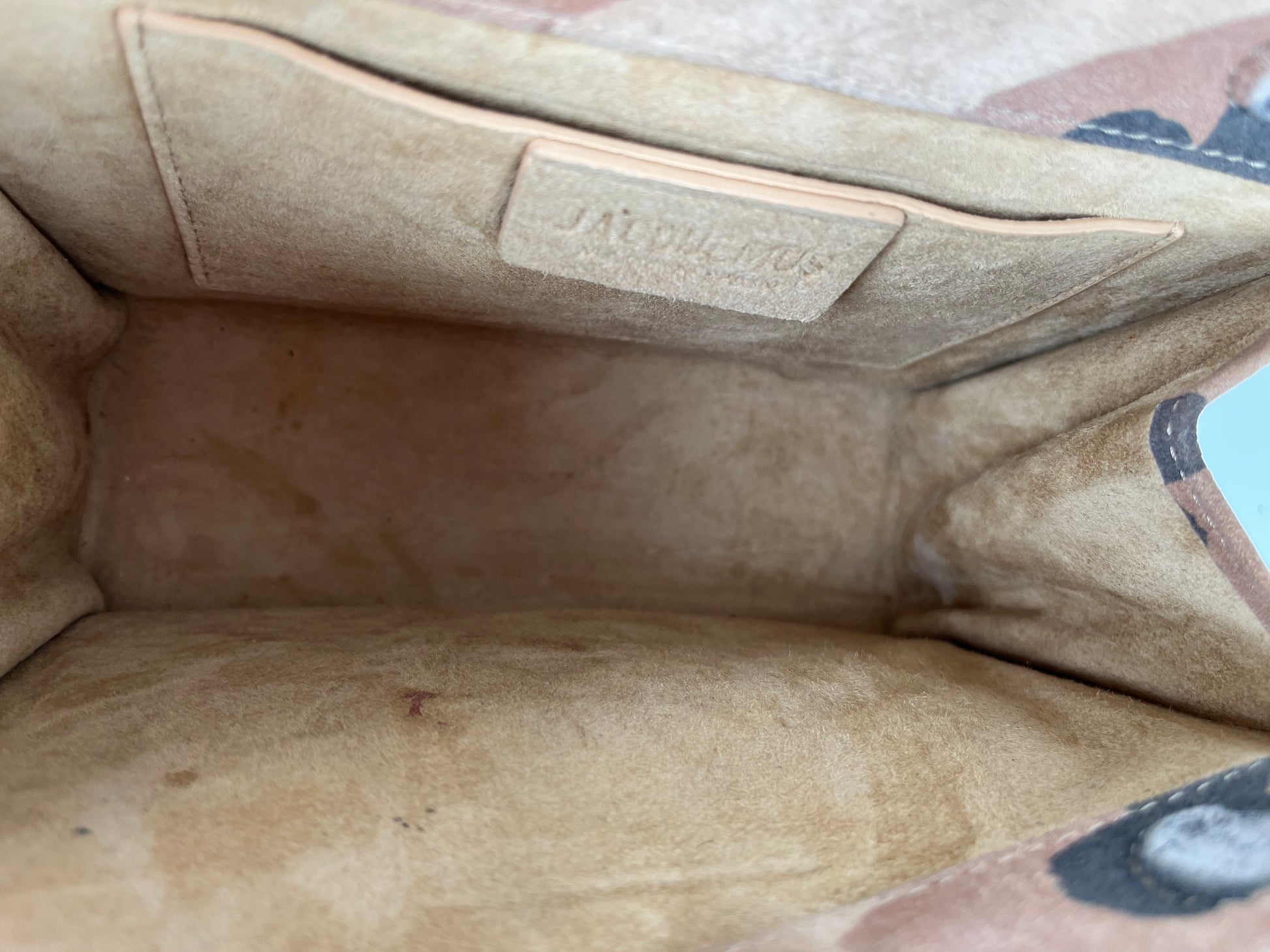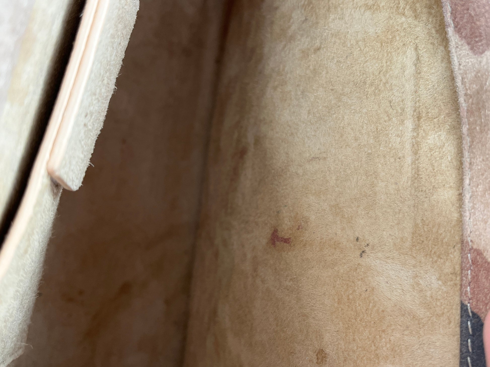 Condition: Scuffs at corners, marks at back, small mark at front, discoloration at leather strap, marks at interior. Please see the photographs.