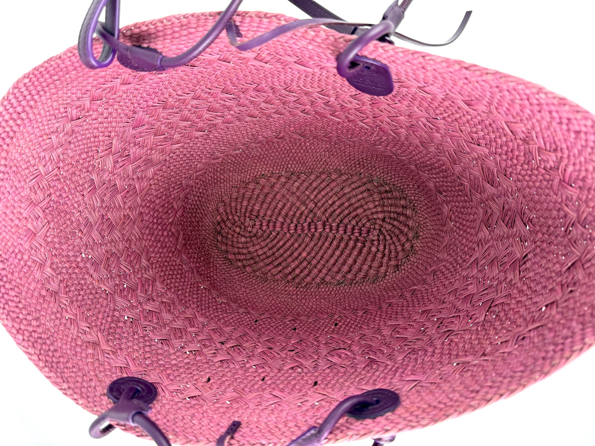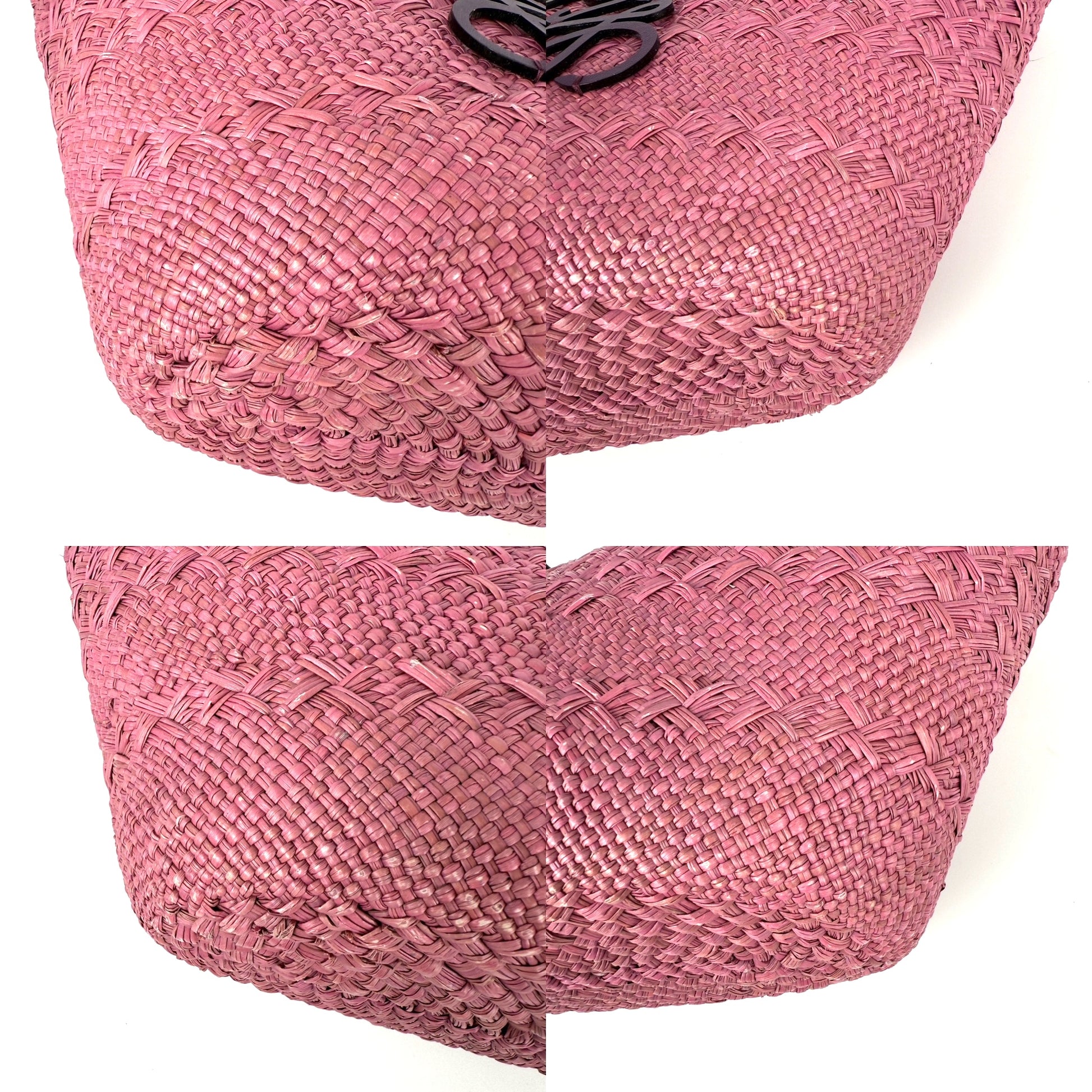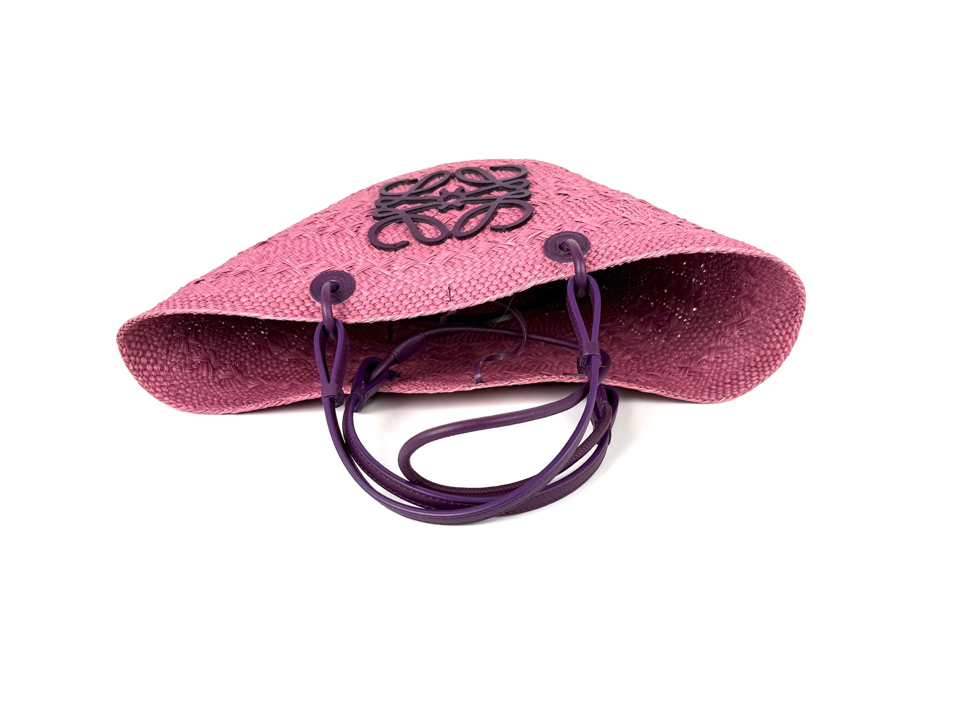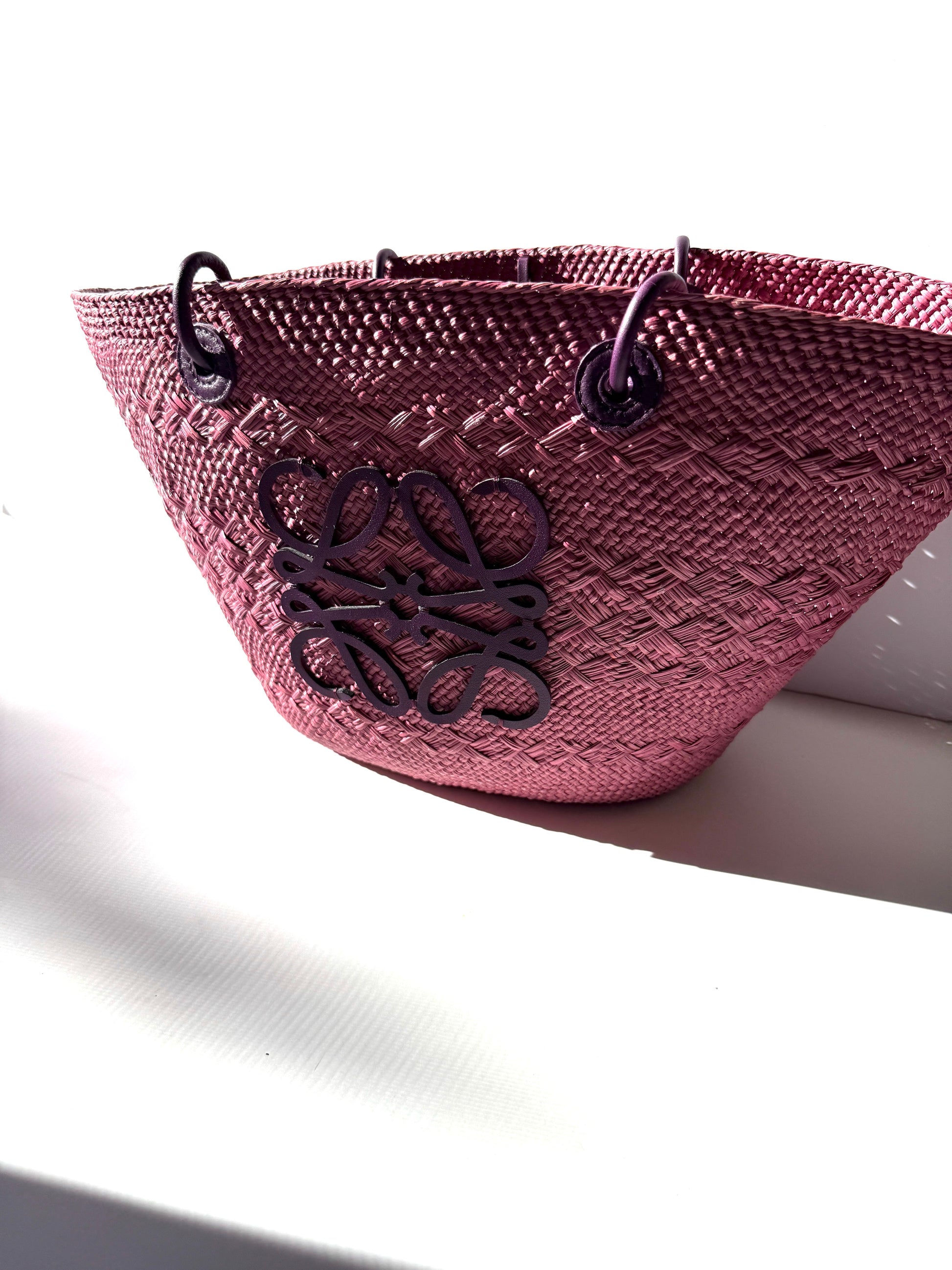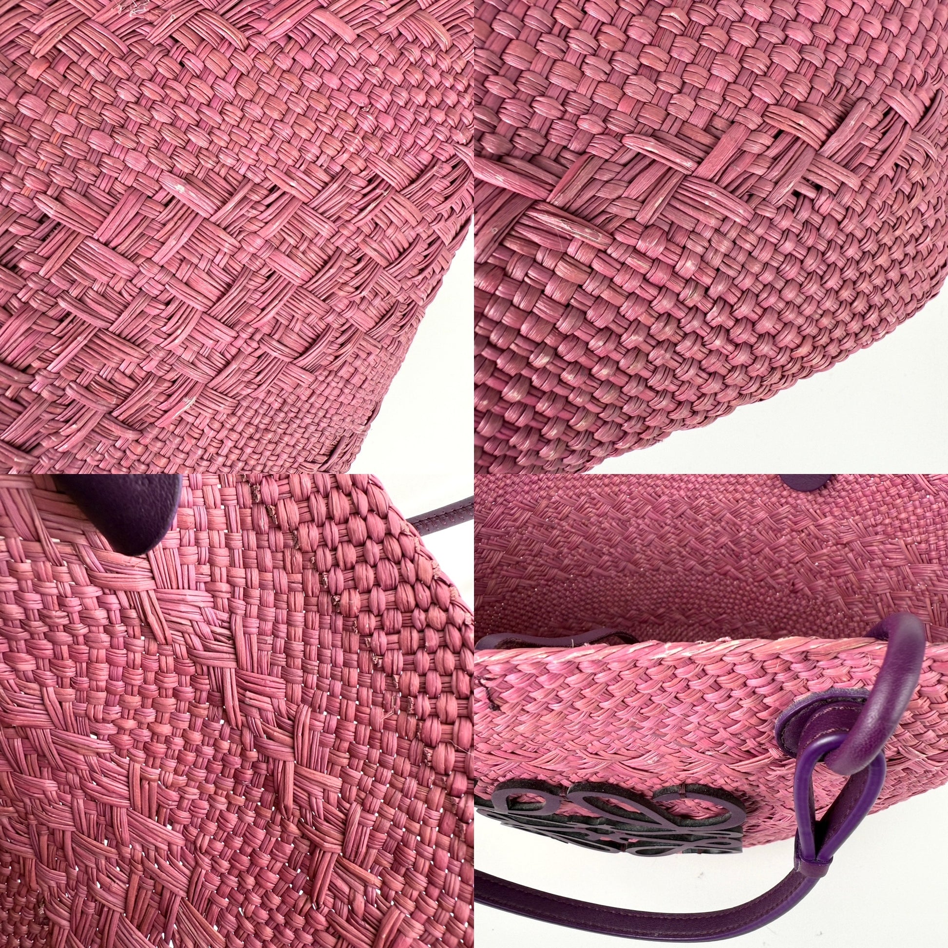 LOEWE Anagram Basket Medium Iraca Palm Leather Purple Pink Tote Bag