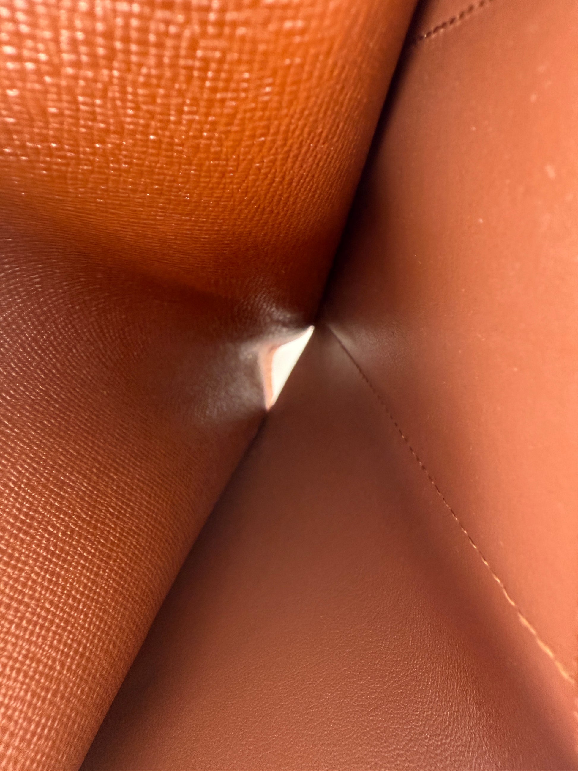 Condition: Tiny white marks in few spots, indent at interior, discoloration at snap hardware. Please see the photographs.