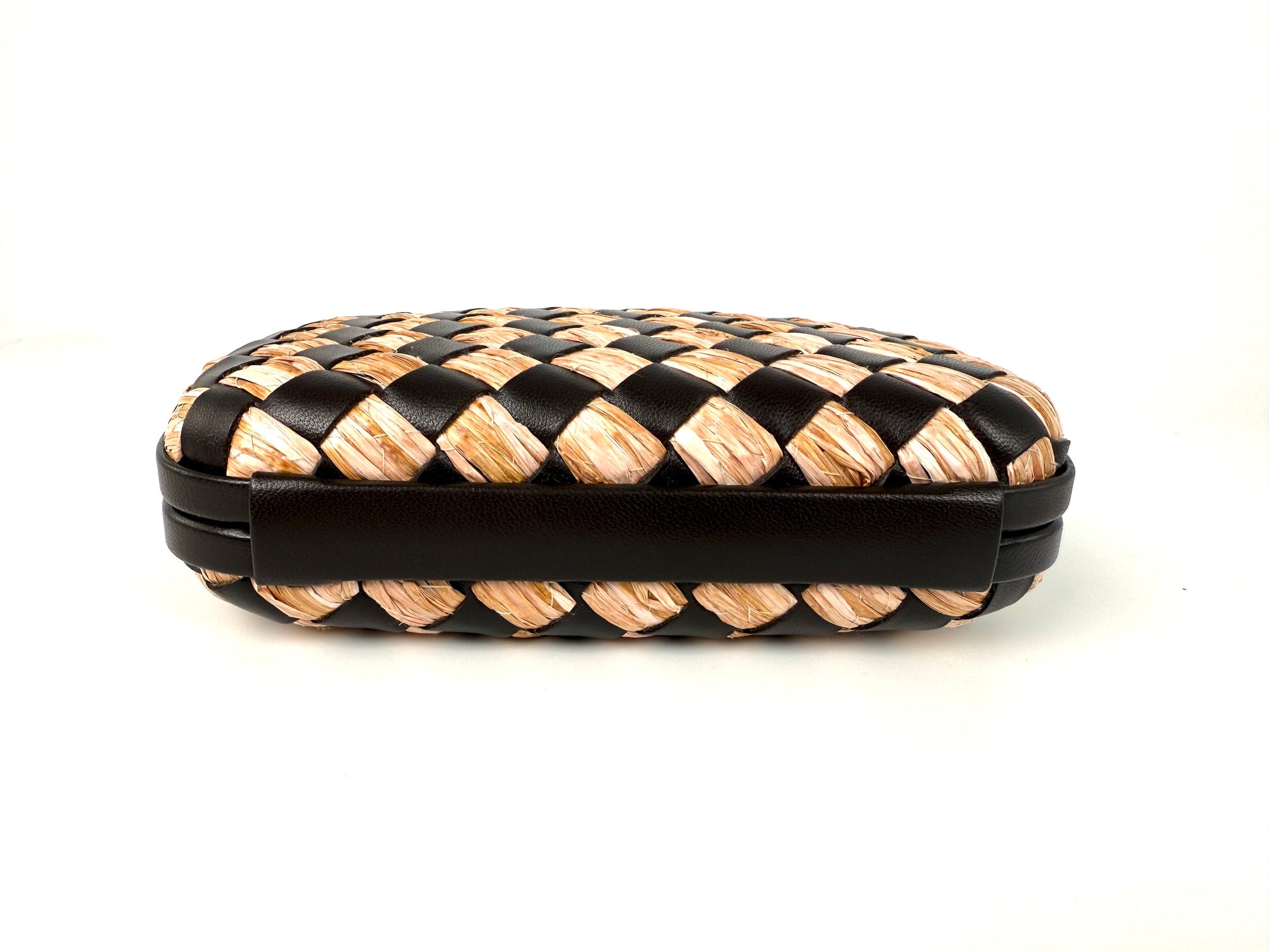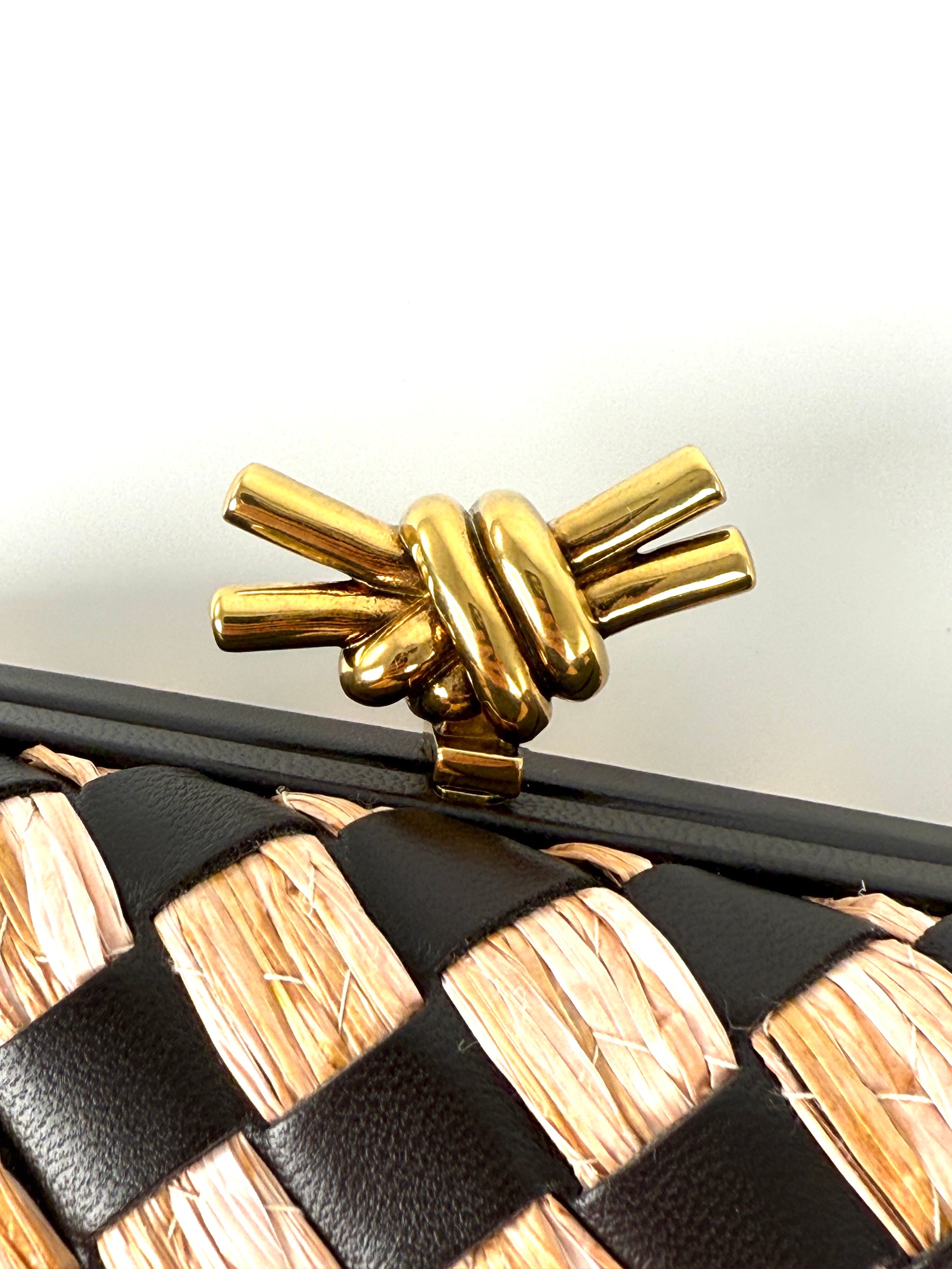 New Bottega Veneta Knot Minaudière Woven Intrecciato Straw Raffia Leather Clutch Bag