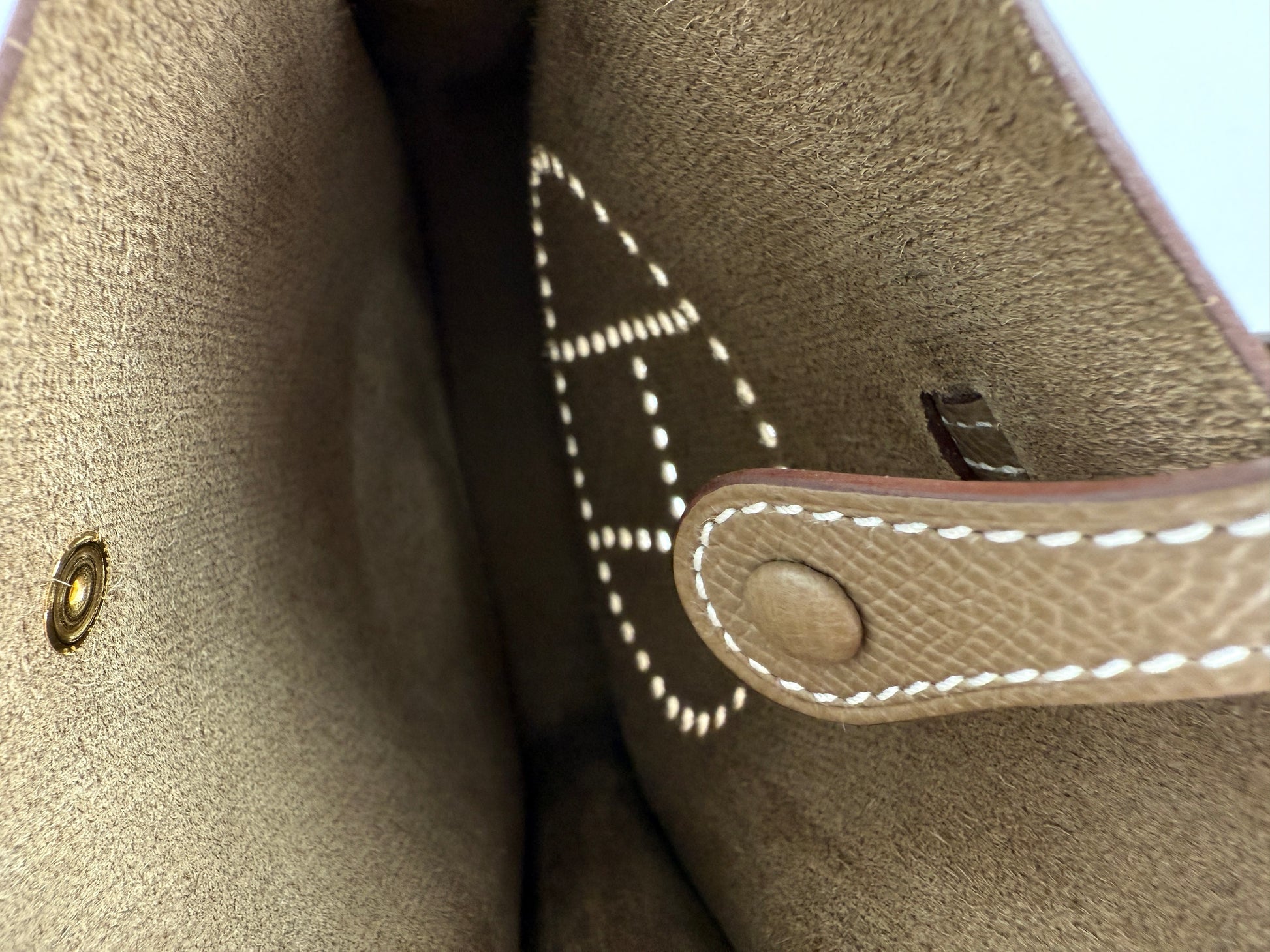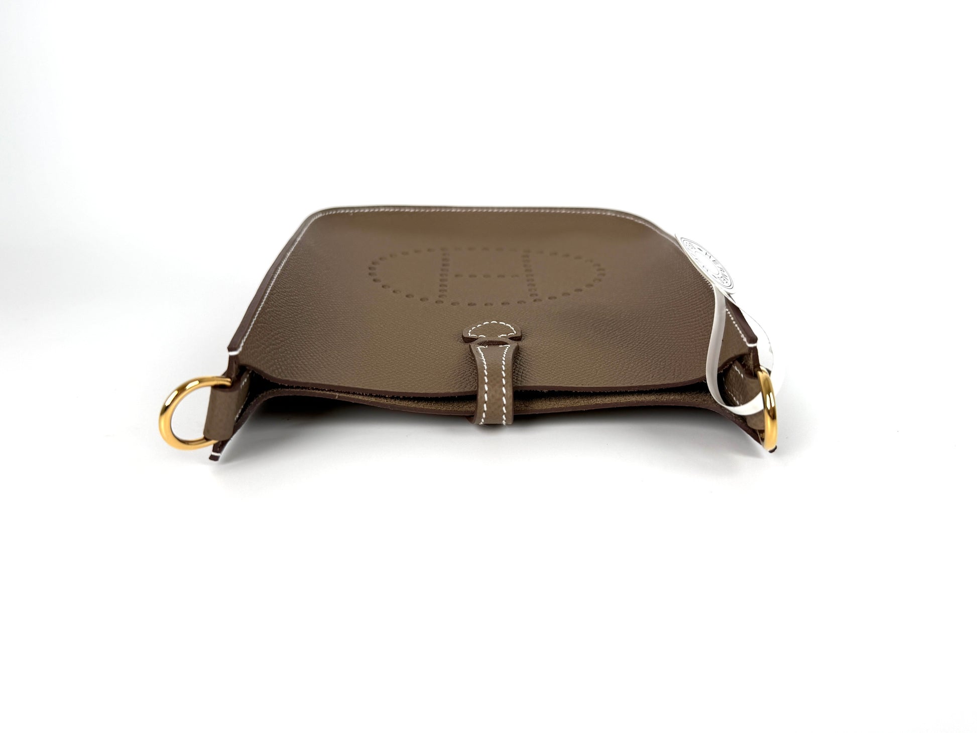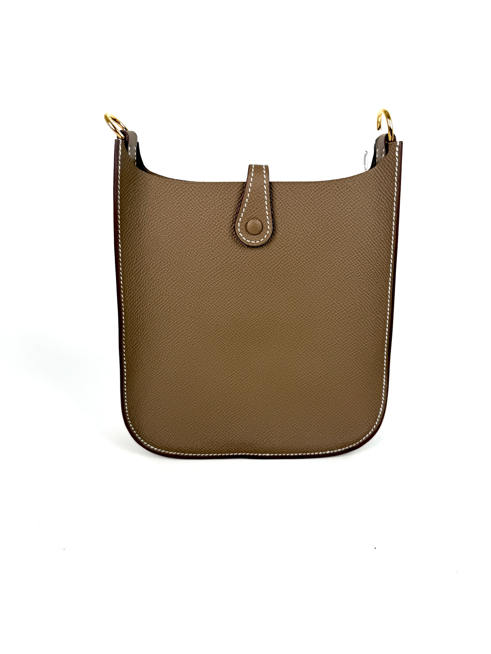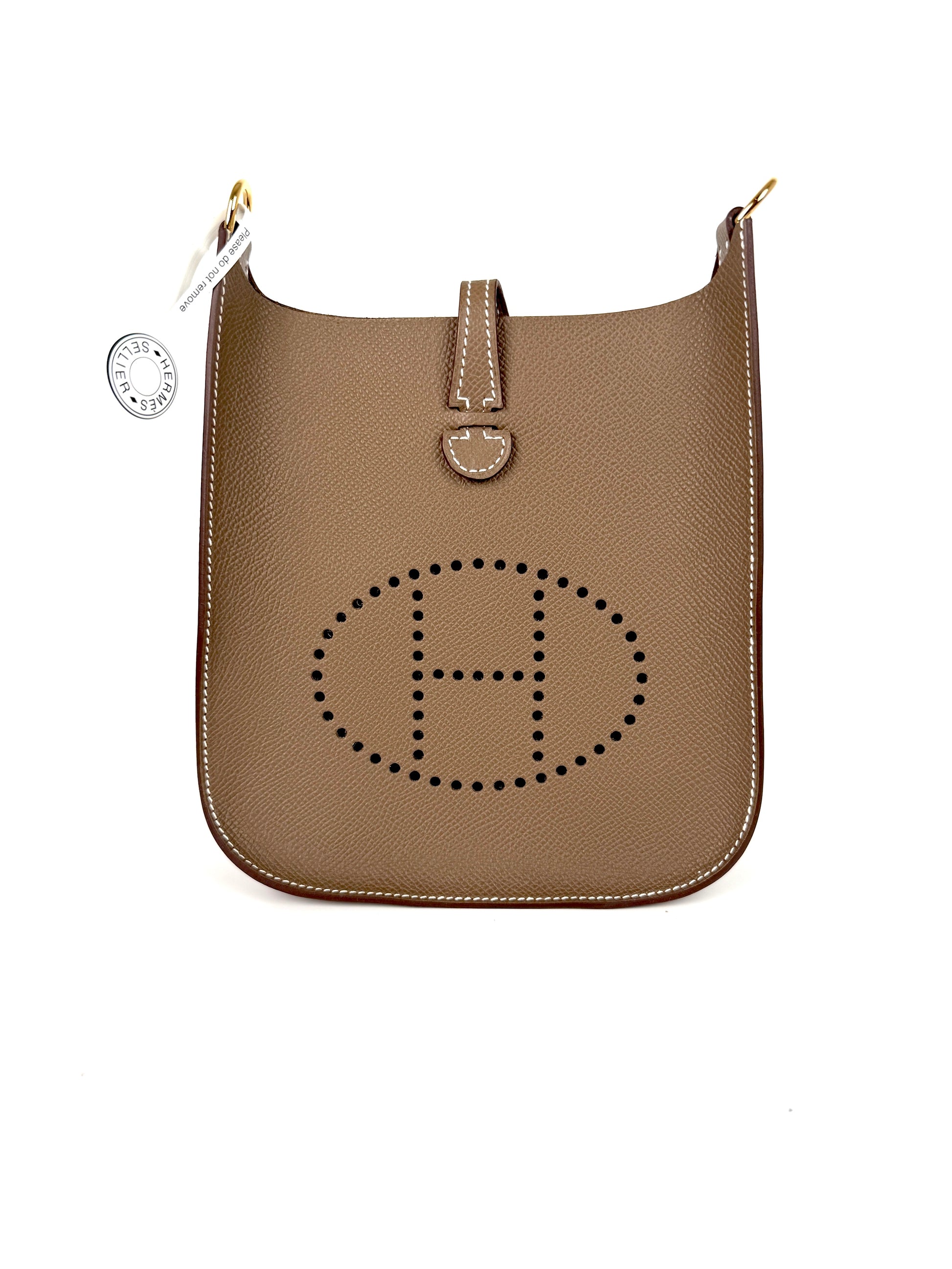 New HERMES Mini Evelyne Sellier TPM 16 Etoupe Leather Crossbody Bag