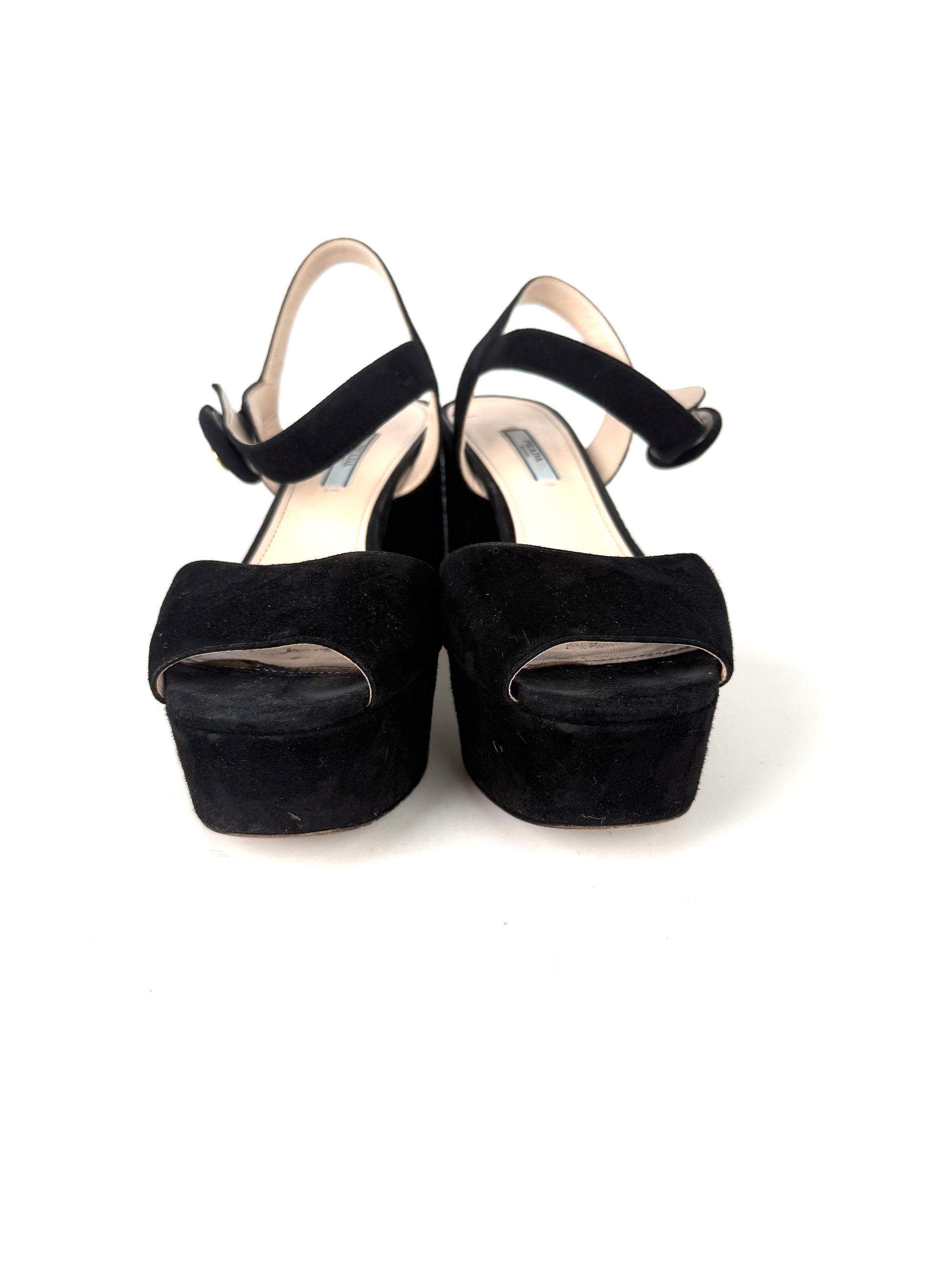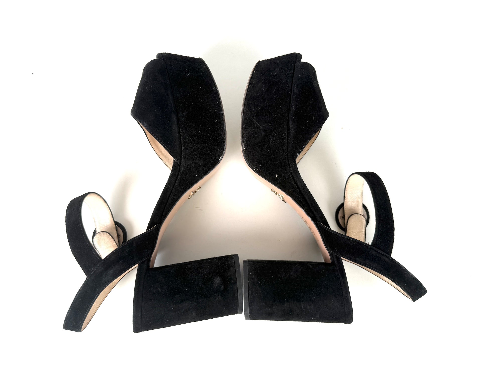 Prada Black Suede Platform Block Heel Sandals 39.5, 9