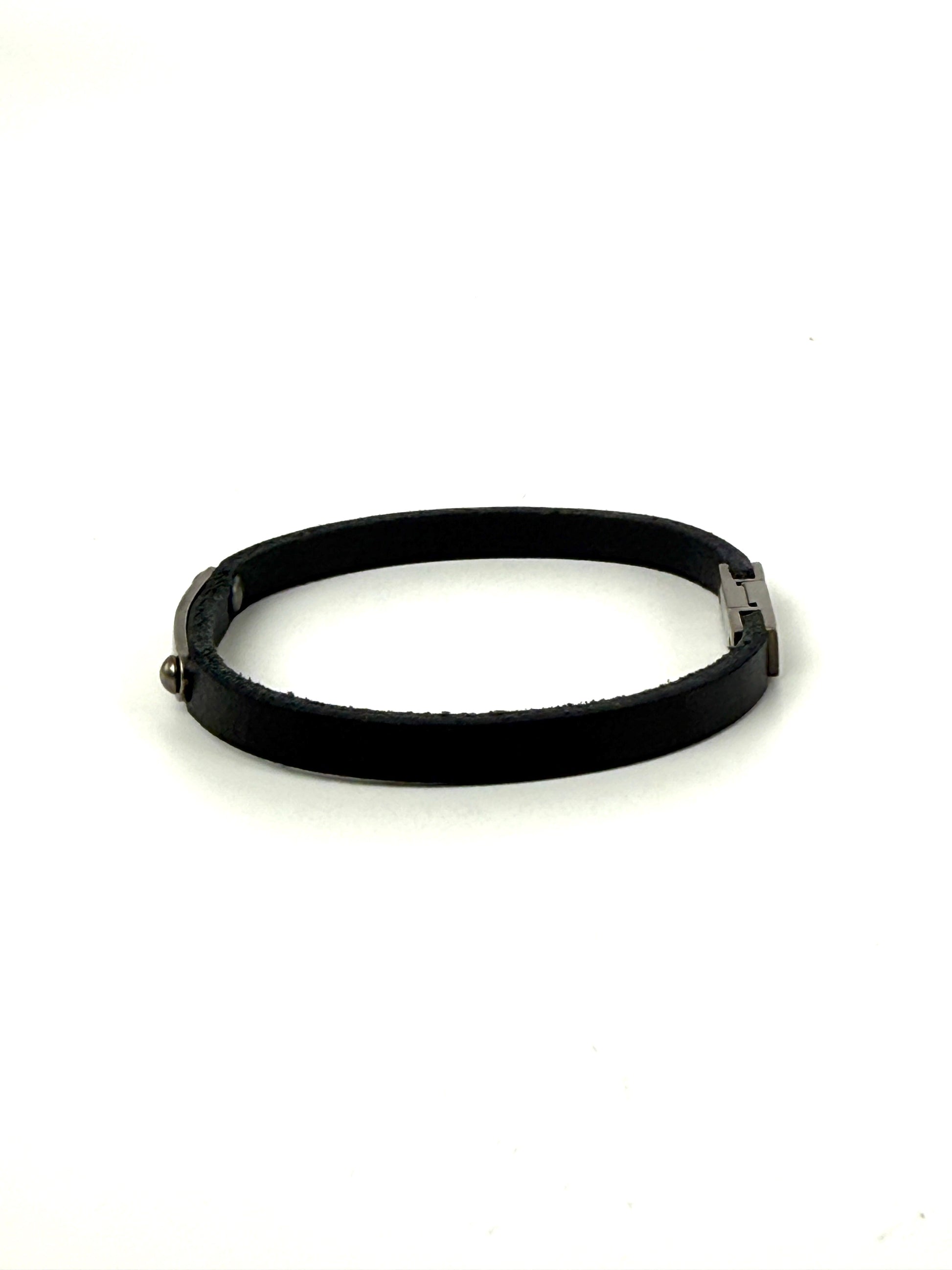 SAINT LAURENT ID Plaque Wrap Black Leather Bracelet M