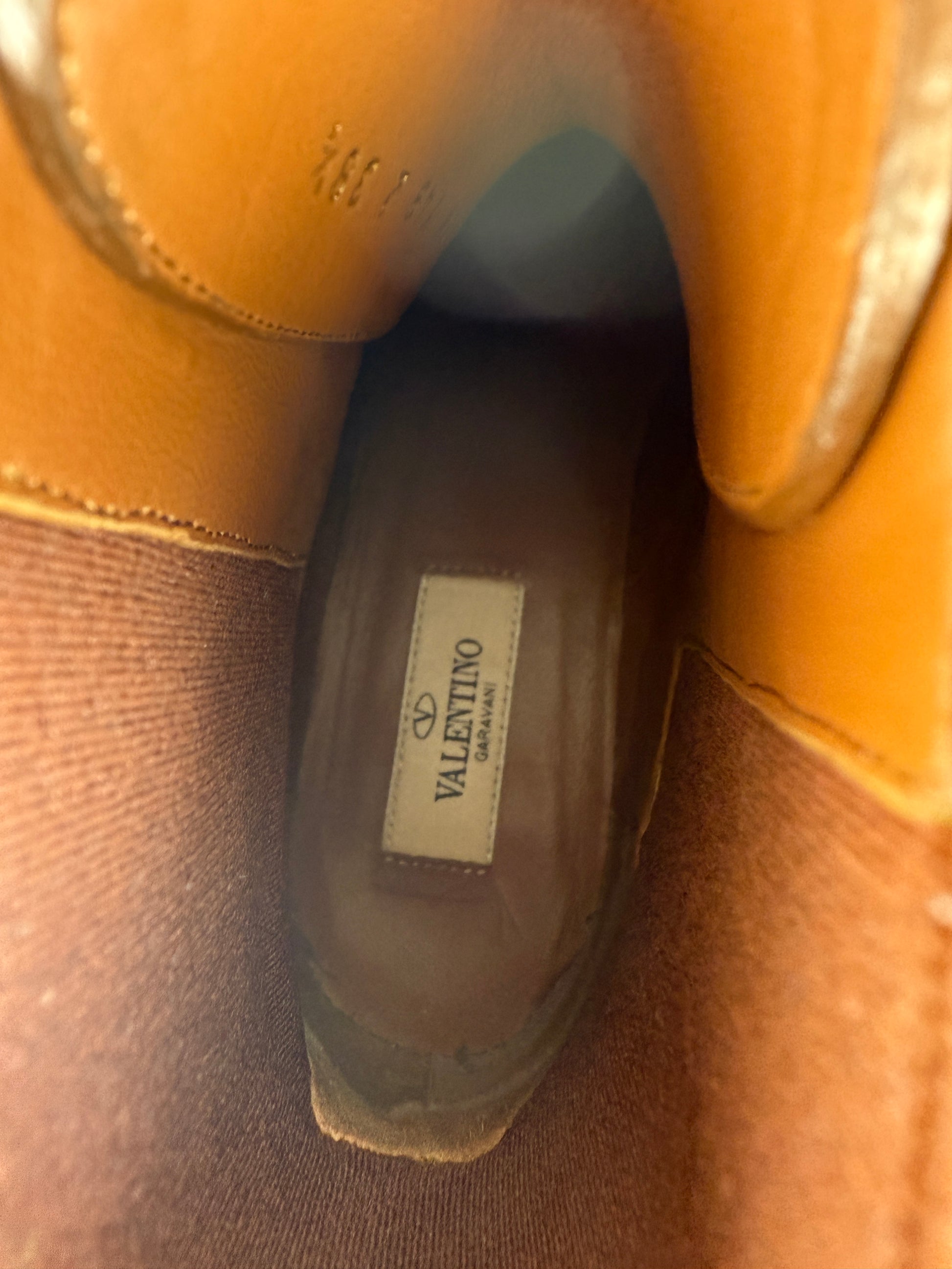 VALENTINO Beatle Buckle Rockstud Brown Leather Ankle Boots 38.5, 8