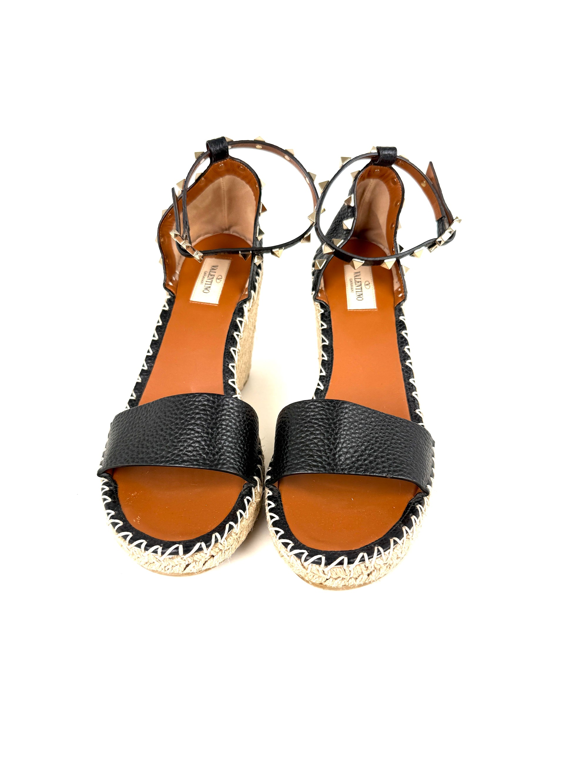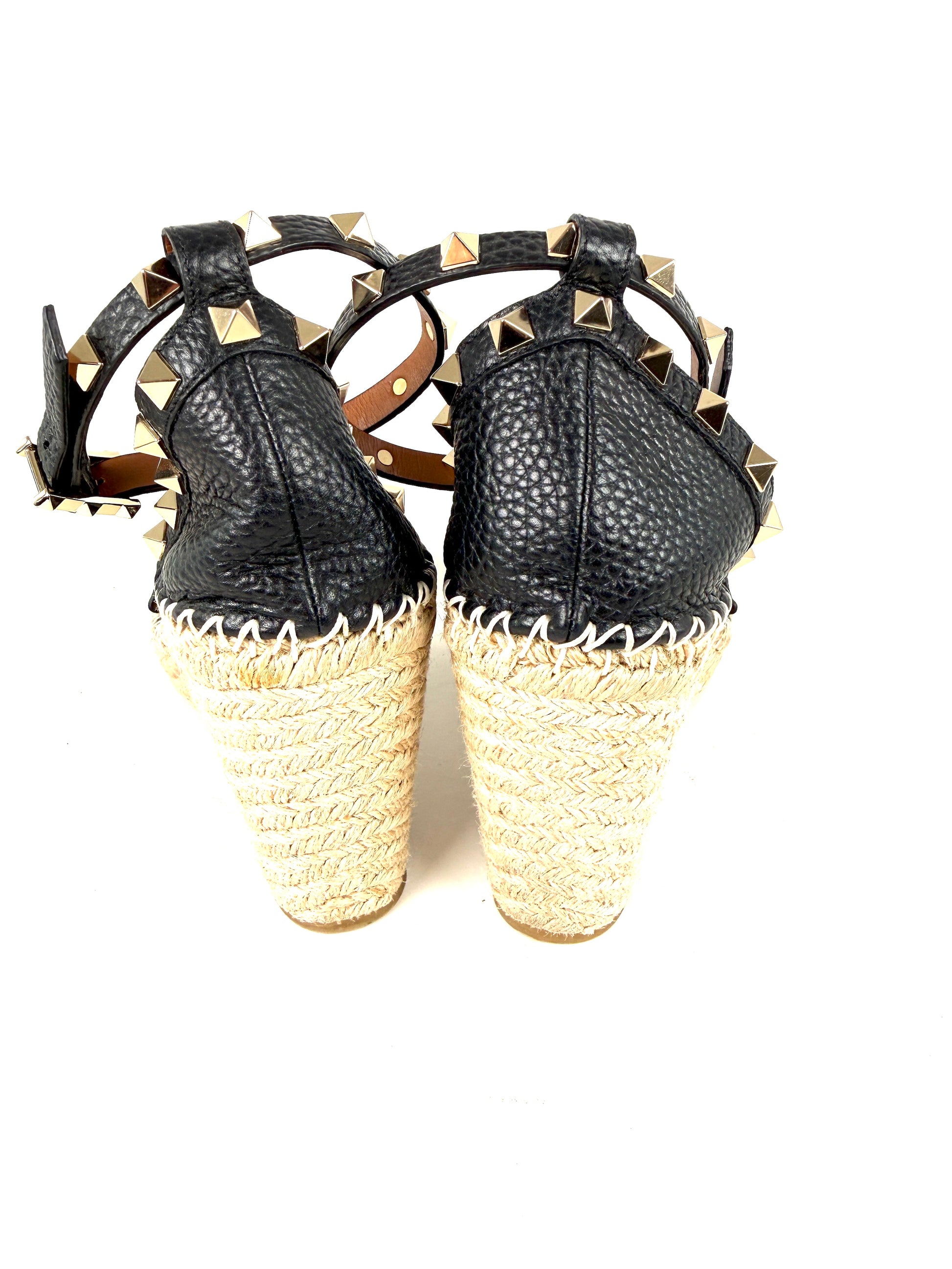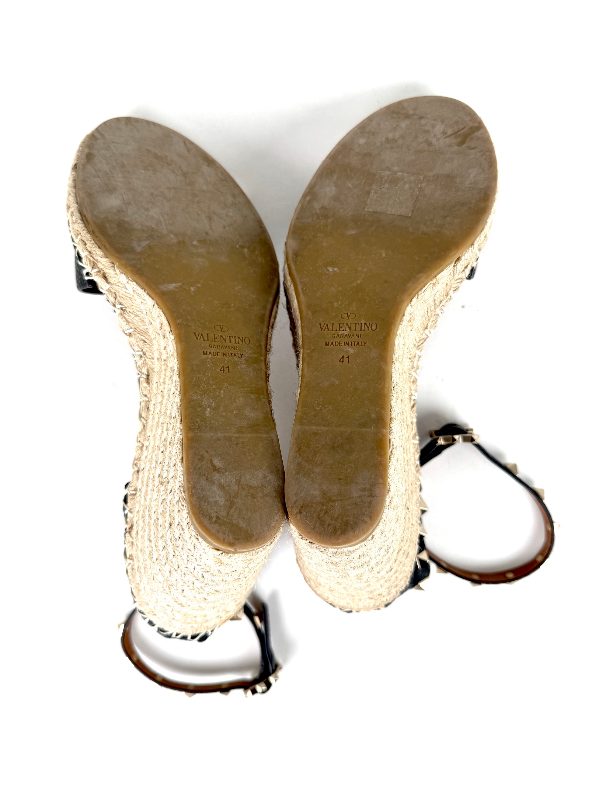 VALENTINO Garavani Double Rockstud Black Espadrille Wedge Heel Sandals 41, 10.5