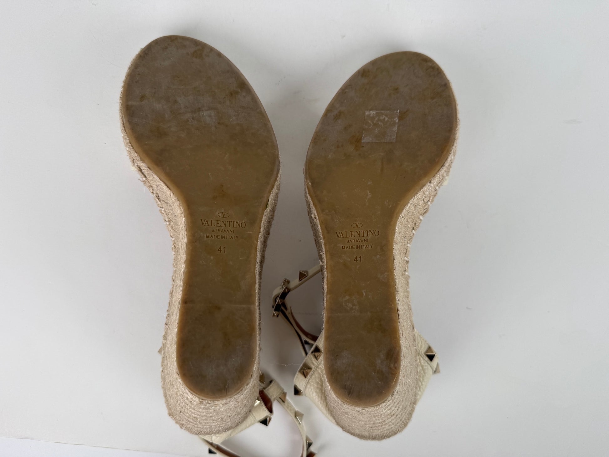 VALENTINO Garavani Double Rockstud Ivory Espadrille Wedge Heel Sandals 41, 10.5