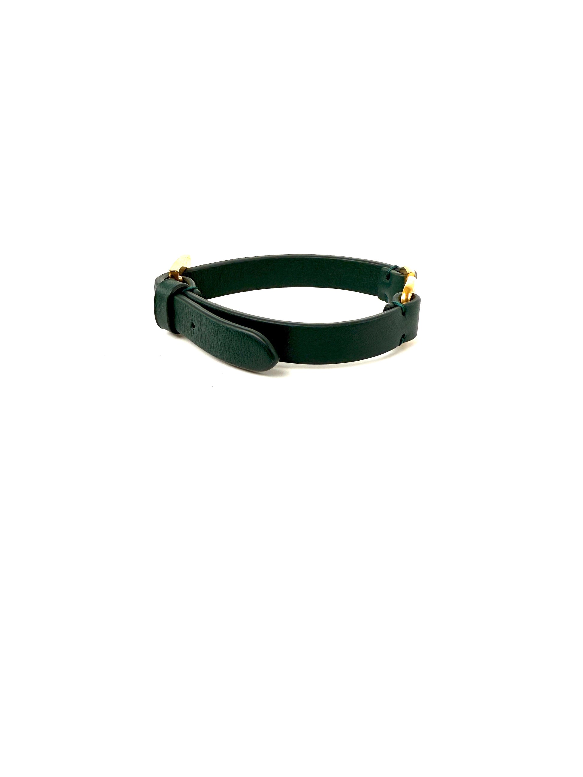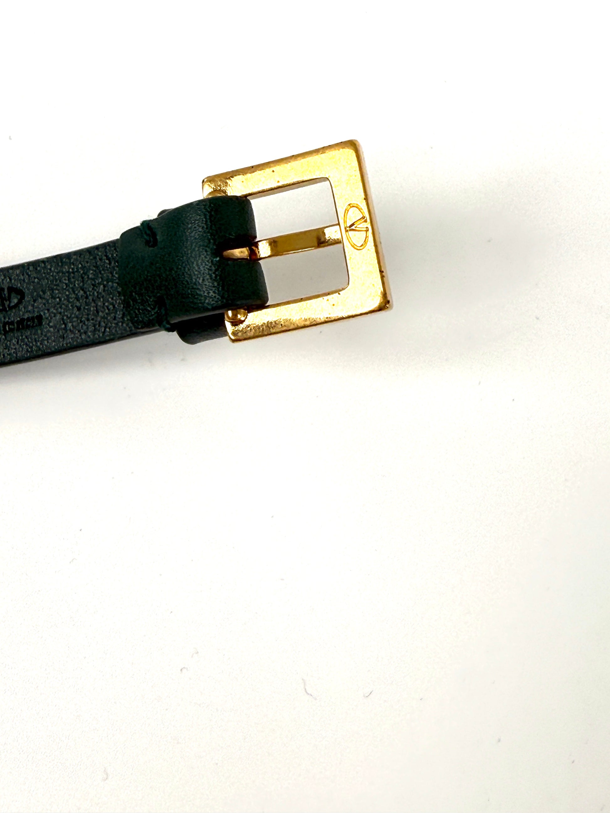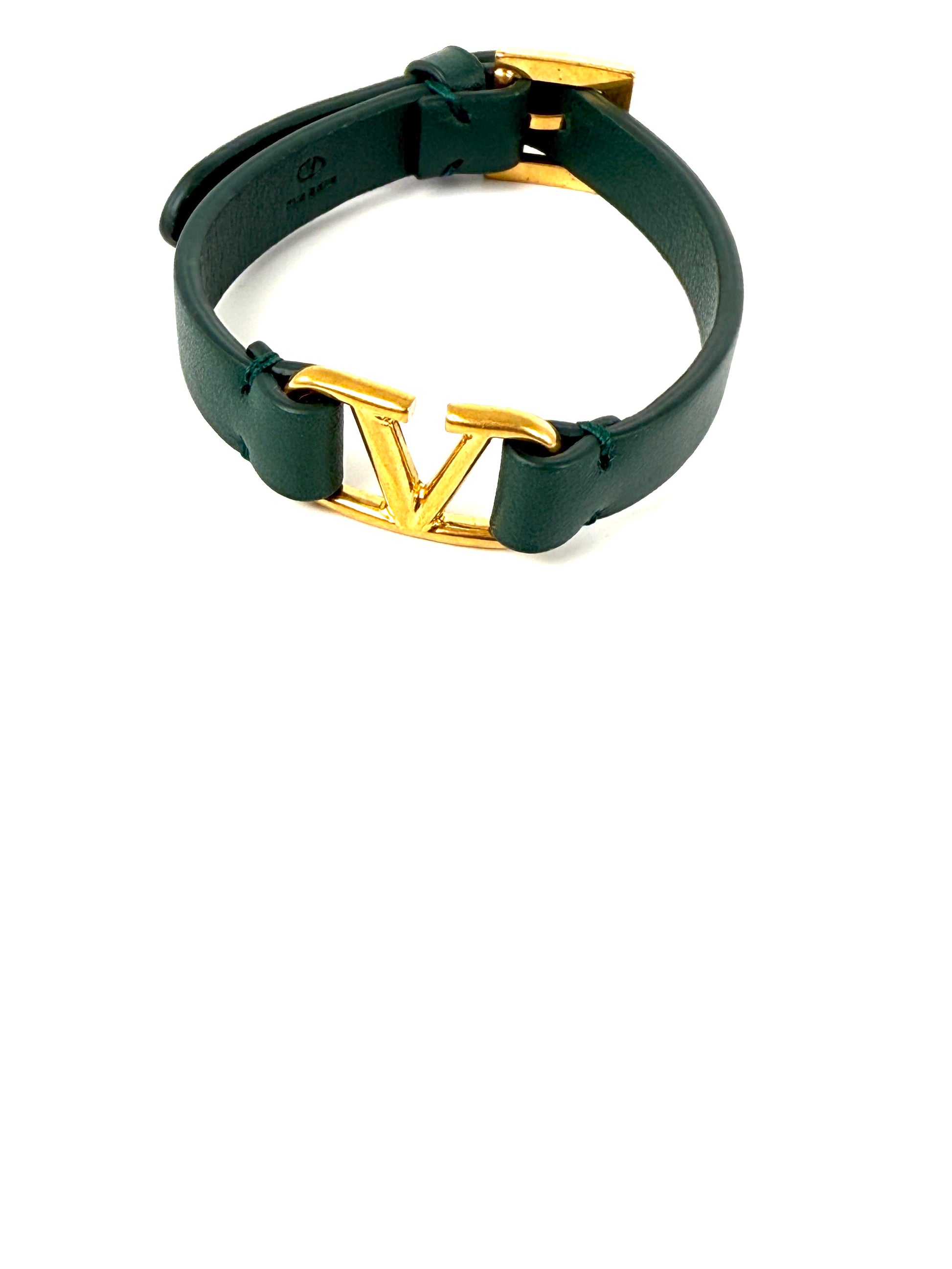 VALENTINO Leather Logo Wrap Green Gold Hardware Bracelet