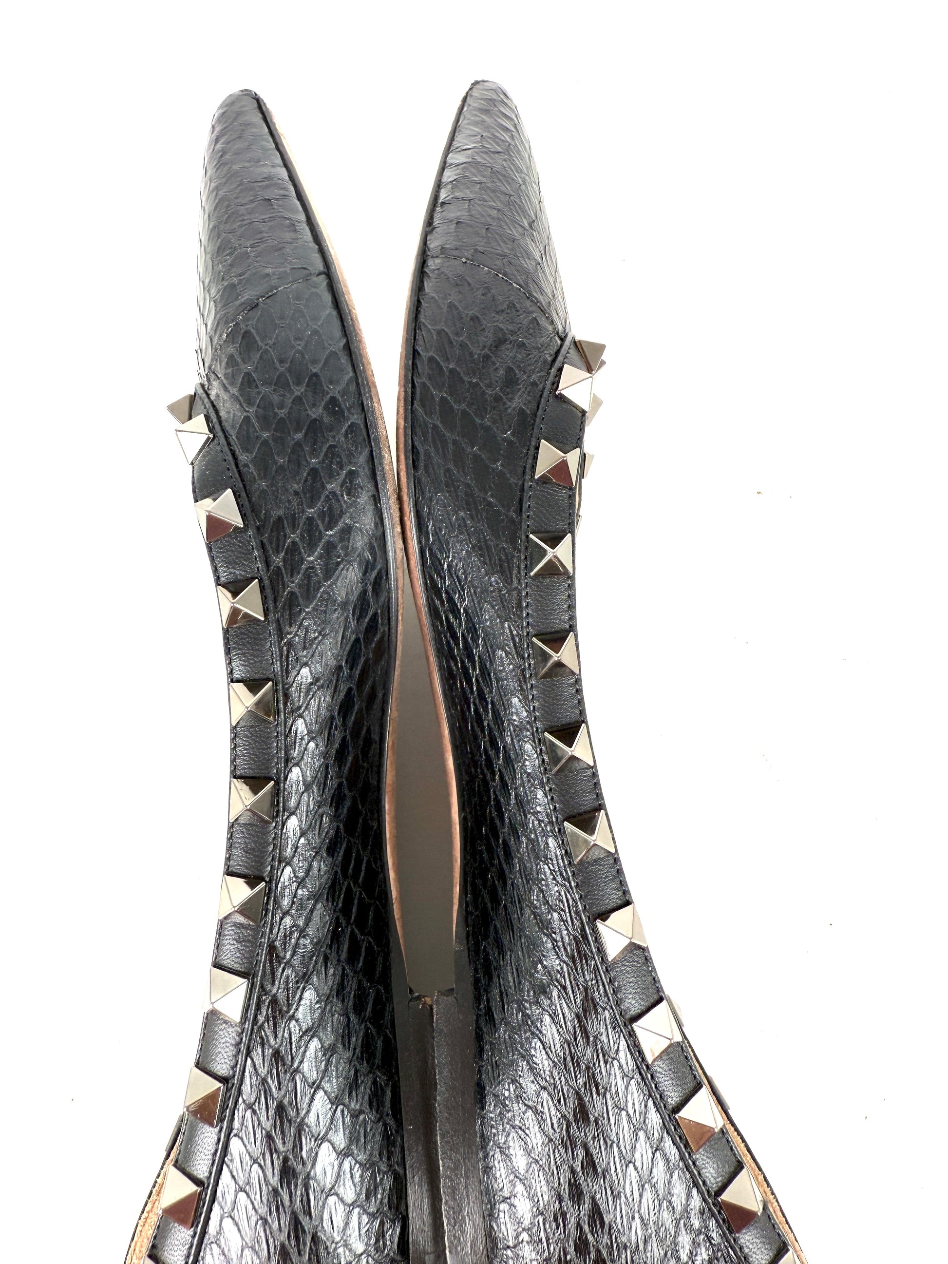 VALENTINO Rockstud Black Snakeskin Leather Flats 38, 7.5