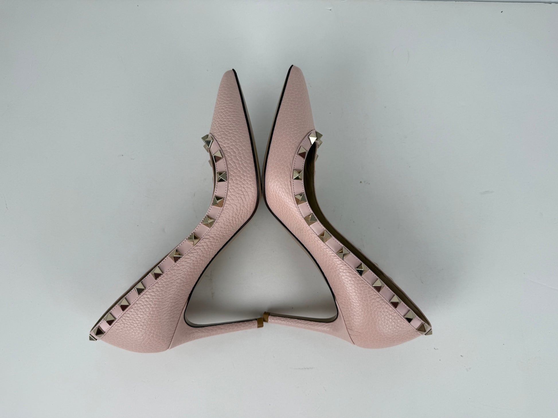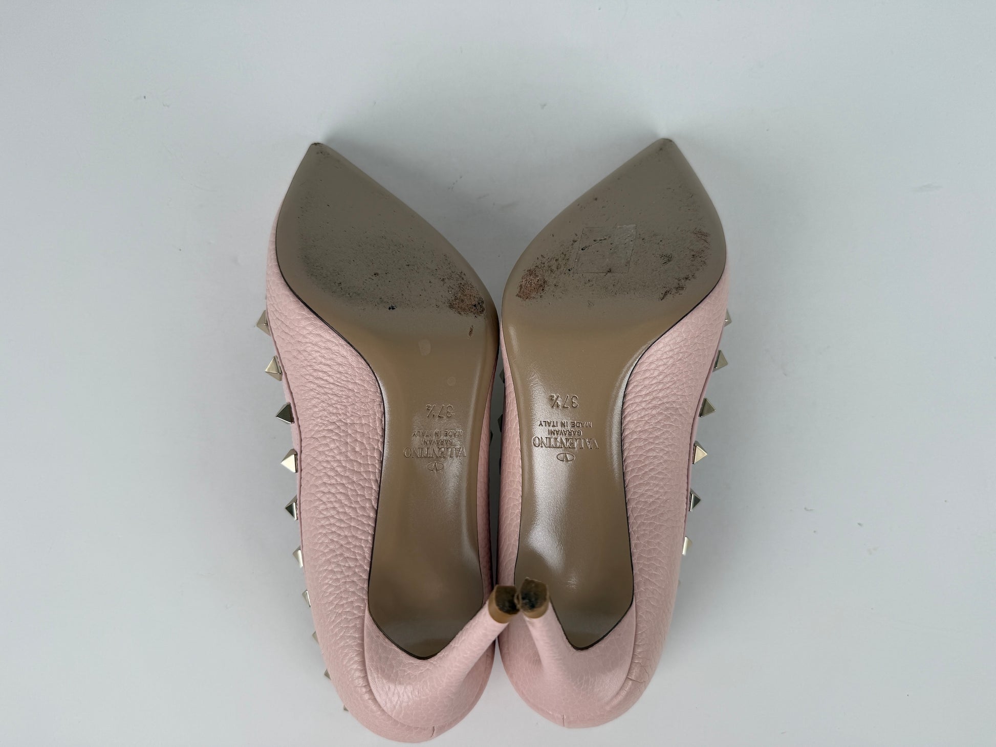 VALENTINO Rockstud Light Pink Leather Heel Pumps 37.5, 7.5