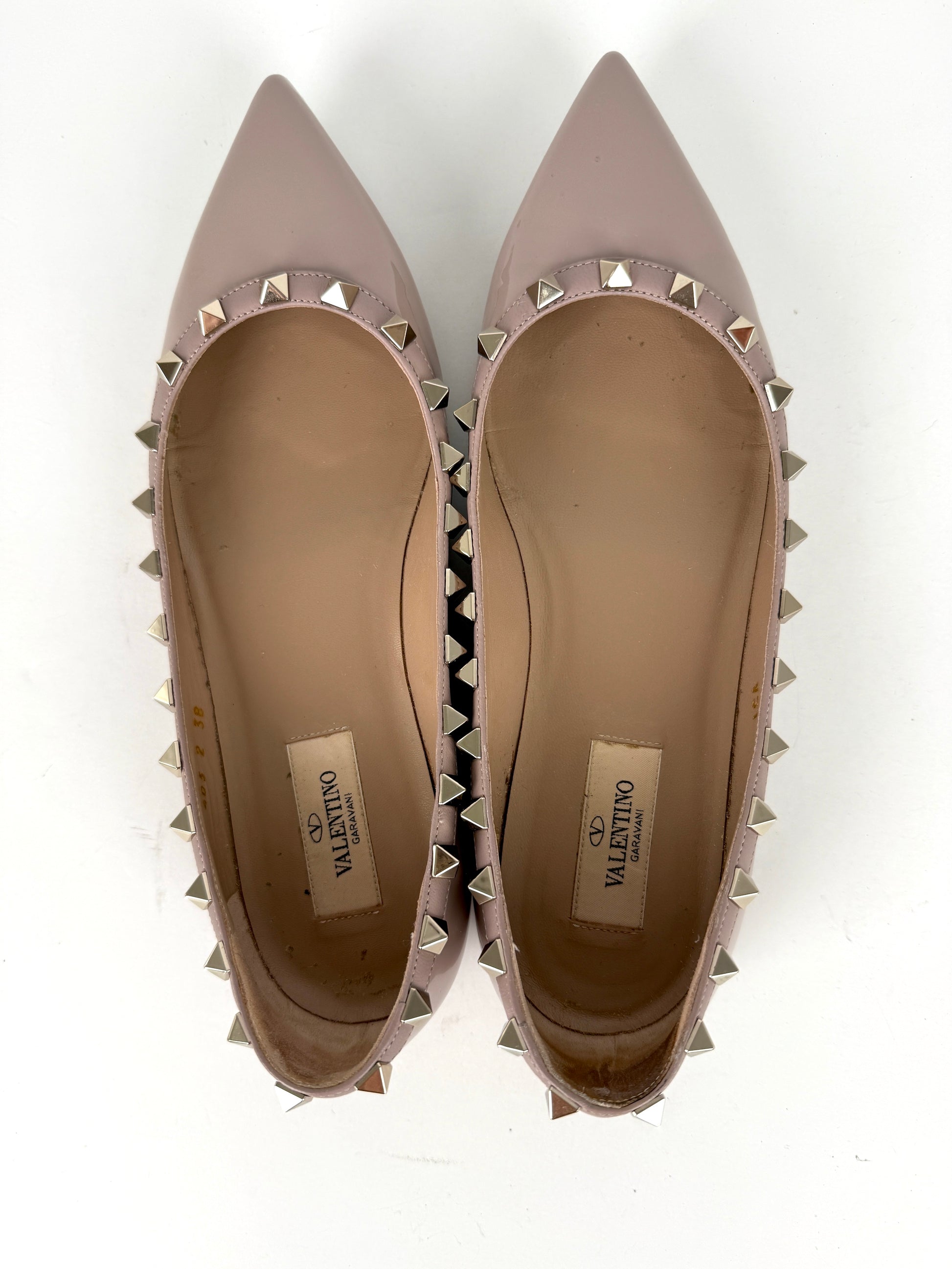 VALENTINO Rockstud Nude Poudre Patent Leather Flats 38, 7.5