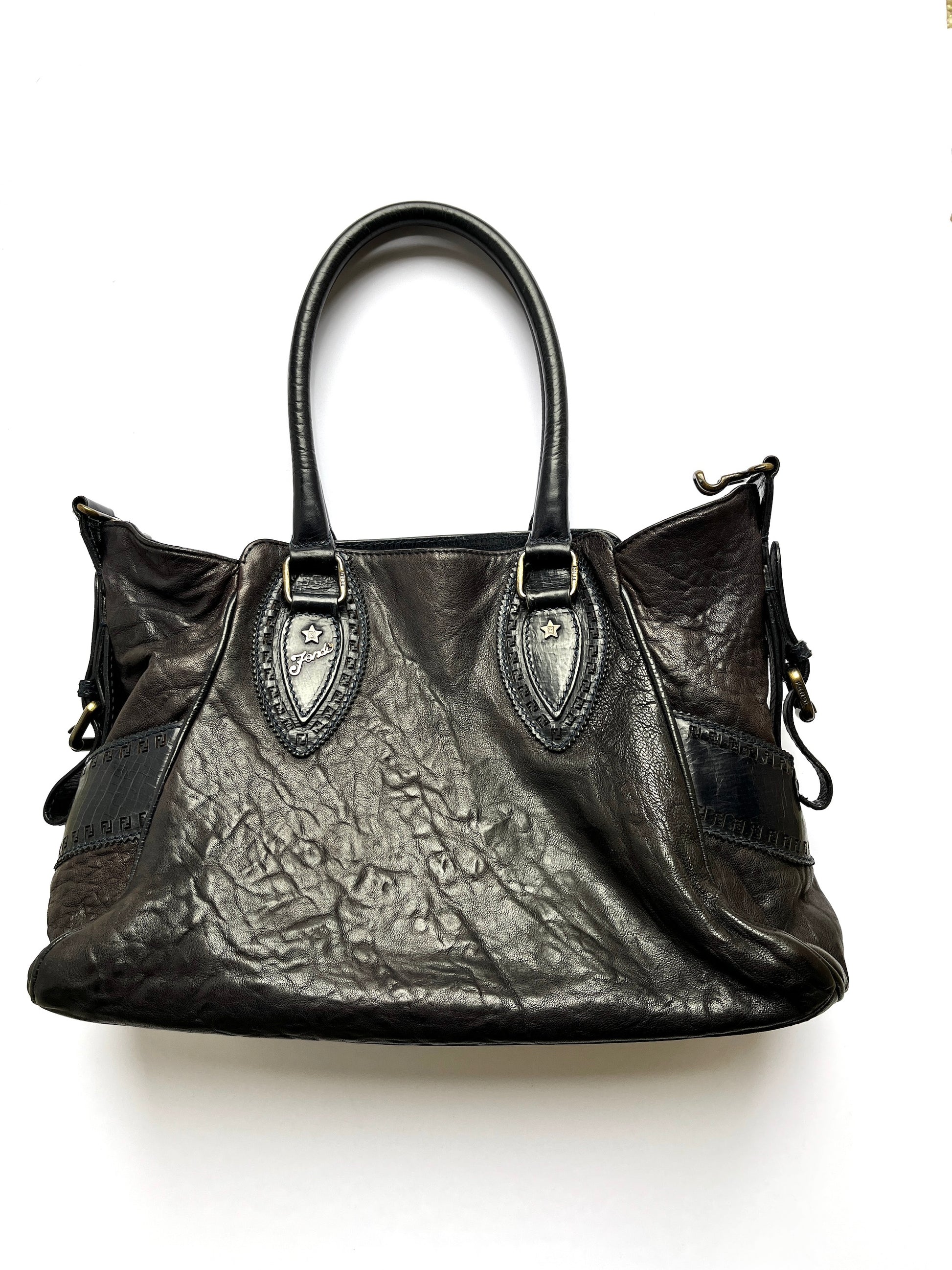 Vintage FENDI Etniko Navy Blue Leather Shoulder Bag